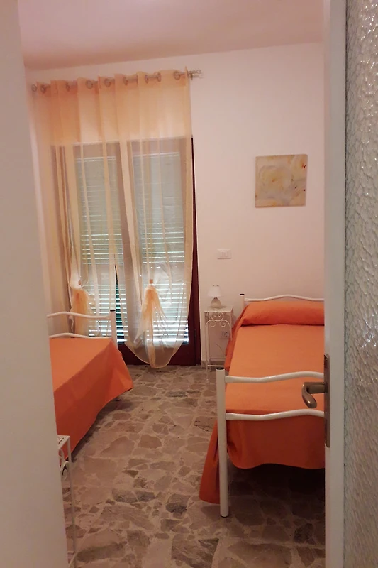 Die Wohnung "Le Coccinelle" befindet sich im 1. und letzten Stock eines Gebäudes in einer der charakteristischsten Gegenden von Elba. Sie liegt nur wenige Schritte vom kleinen goldenen Sandstrand von Forno entfernt. Sie besteht aus Küche, Schlafzimmer mit Doppelbett, kleinem Zimmer mit zwei Einzelbetten, komplettem Bad und Servicebad mit Waschmaschine und Dusche sowie einer wunderschönen Terrasse mit Meerblick, ausgestattet mit Tisch und Stühlen. Die Fenster und Fenstertüren sind mit Moskitonetzen versehen. Ein privater Parkplatz. Mindestaufenthalt 7 Nächte.