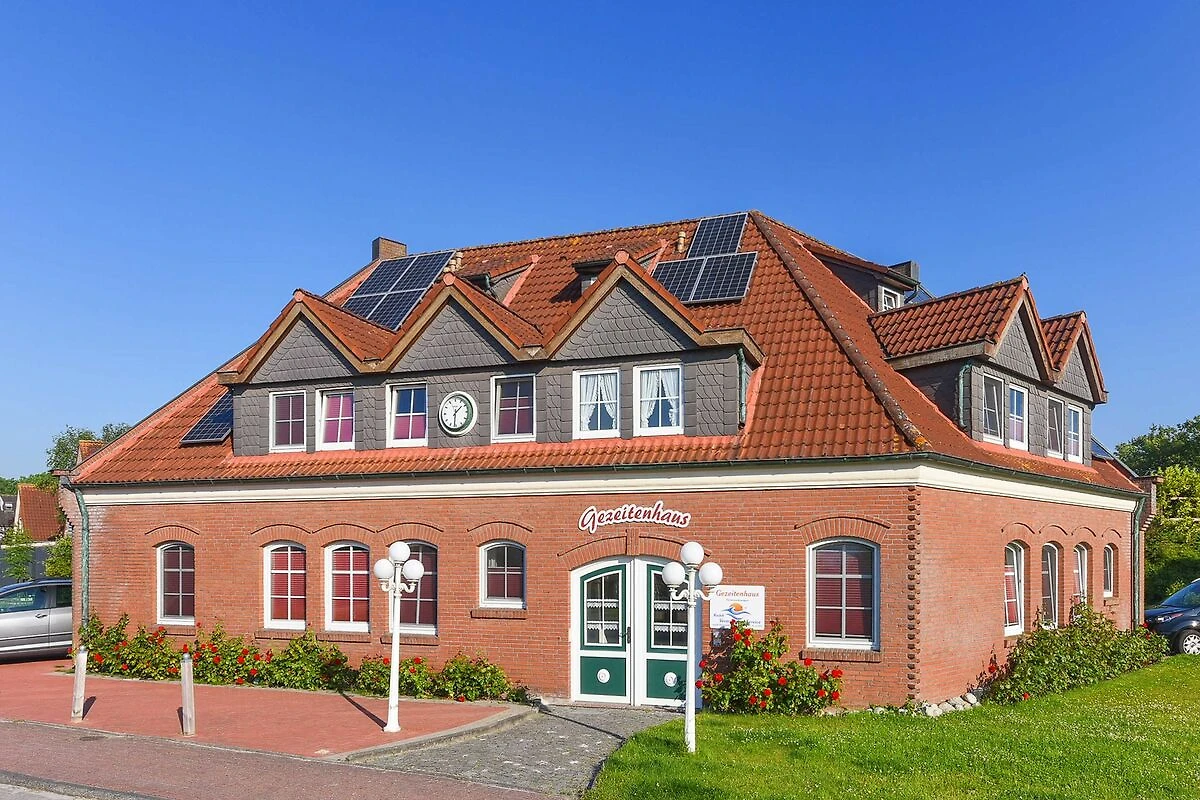 Das „Gezeitenhaus“ liegt mitten in Bensersiel und fast direkt hinter dem Deich.