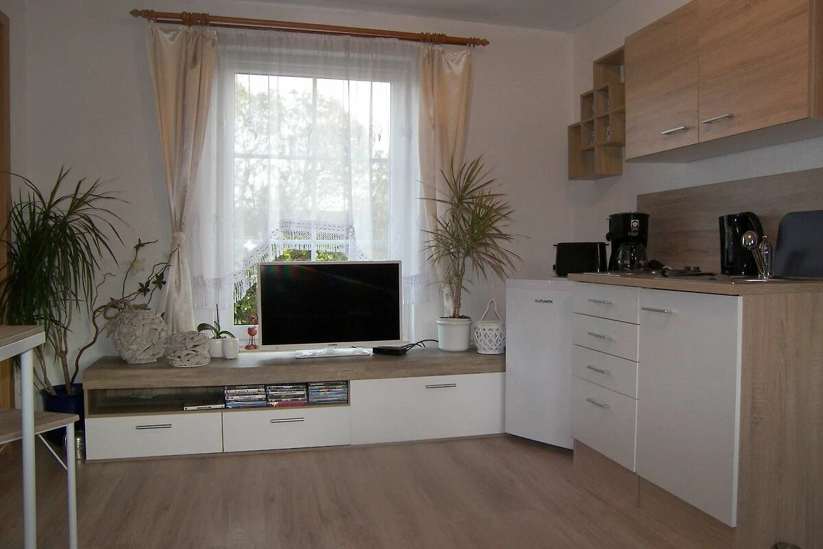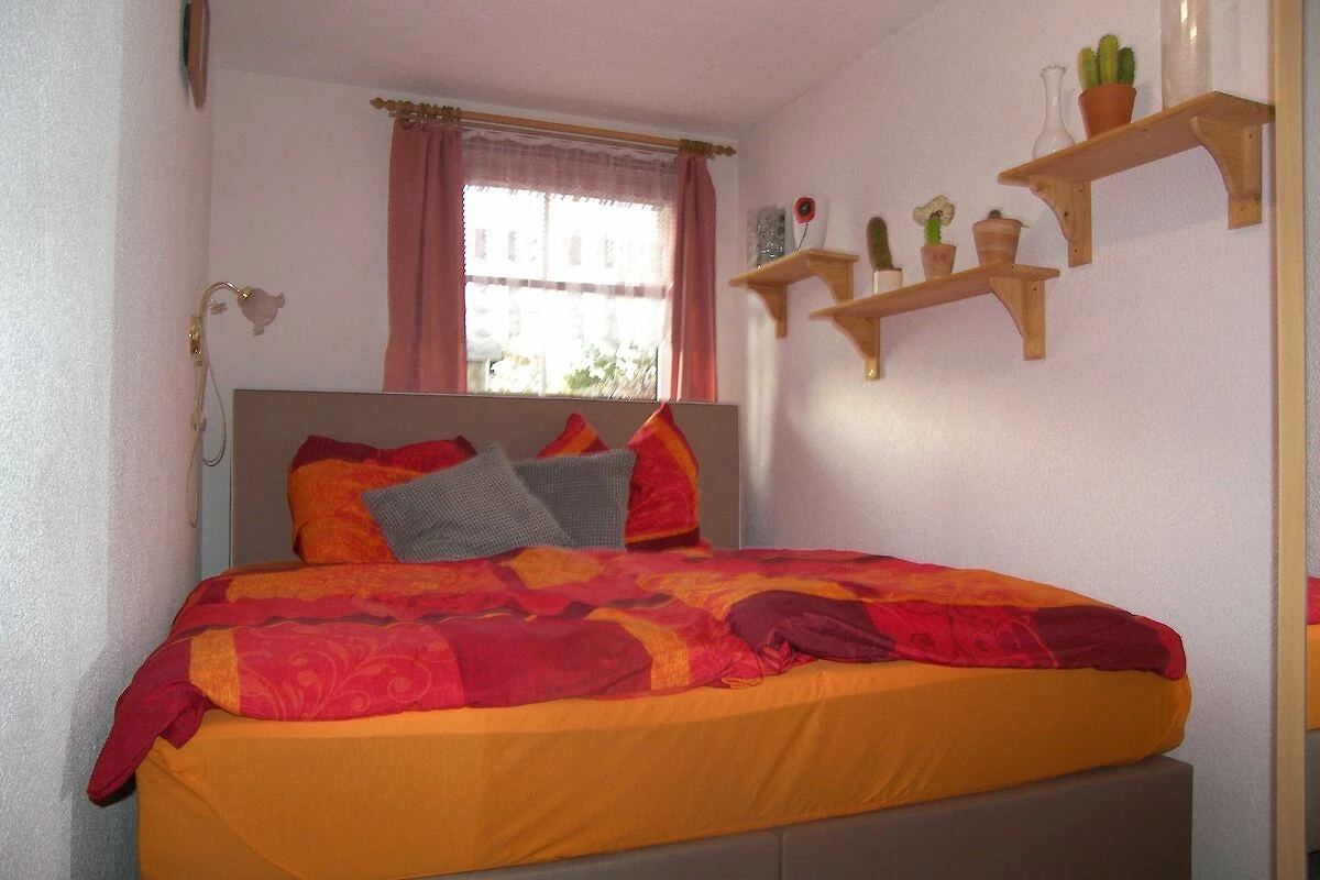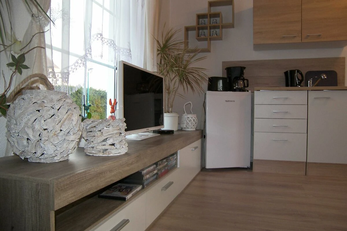 Die 35 qm grosse Ferienwohnung verfügt über ein Wohnzimmer mit einer gemütlichen Couch, einem Flachbildfernseher, Radio und offenen Küchenzeile. Die Küche ist ausgestattet mit 2-Platten-Herd, Kühlschrank, Wasserkocher, Toaster und Kaffeemaschine. Das separate Schlafzimmer ist mit einem Doppelbett und Kleiderschrank ausgestattet. Das Badezimmer verfügt über eine Dusche und einen Haartrockner. Draussen steht Ihnen eine ca. 40qm grosse Terrasse inklusive Sonnenschirm, Wäschespinne, Grill, Fahrradunterstellmöglichkeit und diversen Sitzmöbeln zur Verfügung. Fahrräder können vor Ort kostenpflichtig ausgeliehen werden.