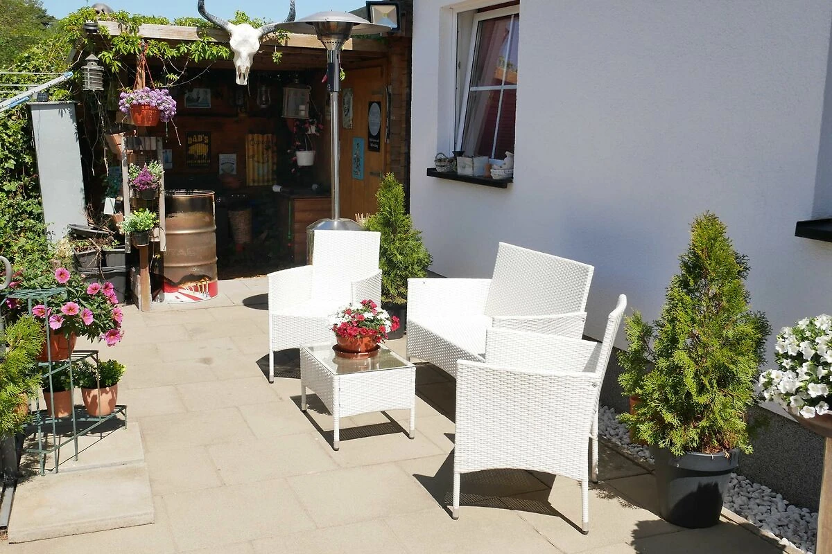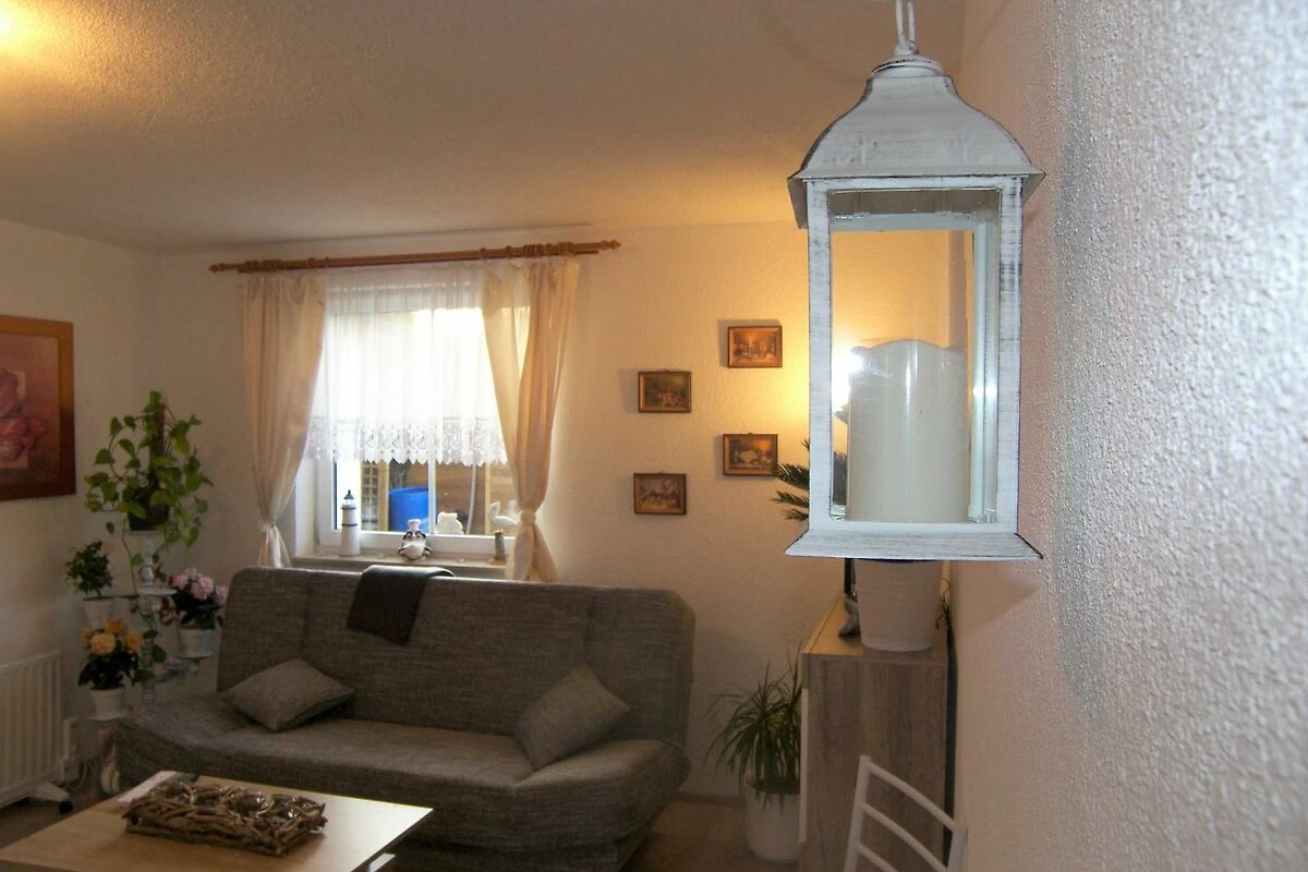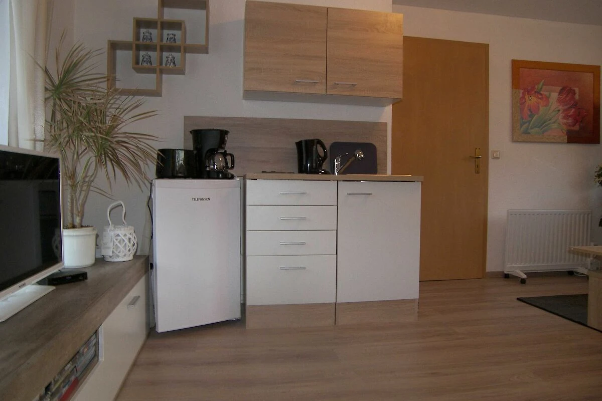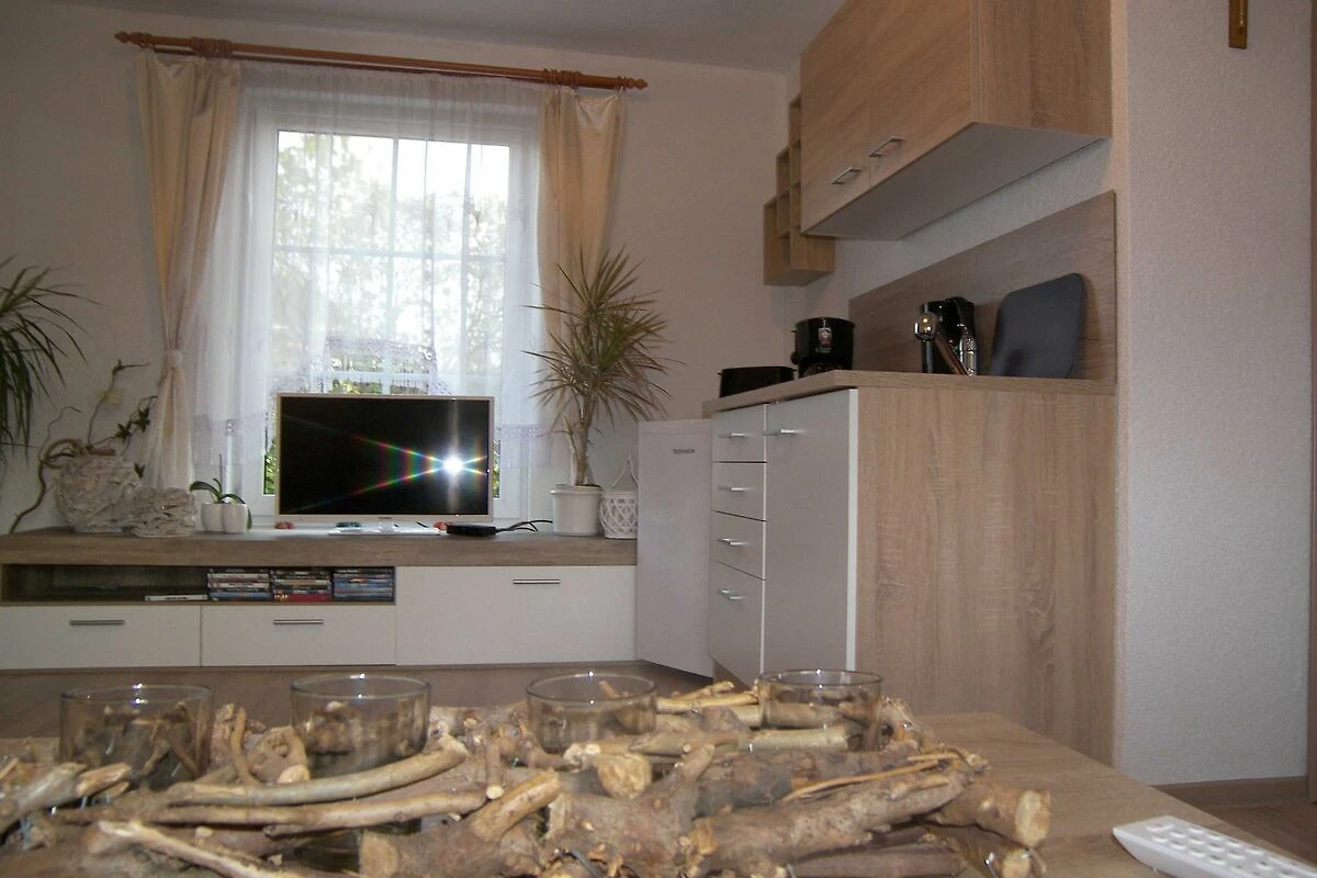 Die 35 qm grosse Ferienwohnung verfügt über ein Wohnzimmer mit einer gemütlichen Couch, einem Flachbildfernseher, Radio und offenen Küchenzeile. Die Küche ist ausgestattet mit 2-Platten-Herd, Kühlschrank, Wasserkocher, Toaster und Kaffeemaschine. Das separate Schlafzimmer ist mit einem Doppelbett und Kleiderschrank ausgestattet. Das Badezimmer verfügt über eine Dusche und einen Haartrockner. Draussen steht Ihnen eine ca. 40qm grosse Terrasse inklusive Sonnenschirm, Wäschespinne, Grill, Fahrradunterstellmöglichkeit und diversen Sitzmöbeln zur Verfügung. Fahrräder können vor Ort kostenpflichtig ausgeliehen werden.