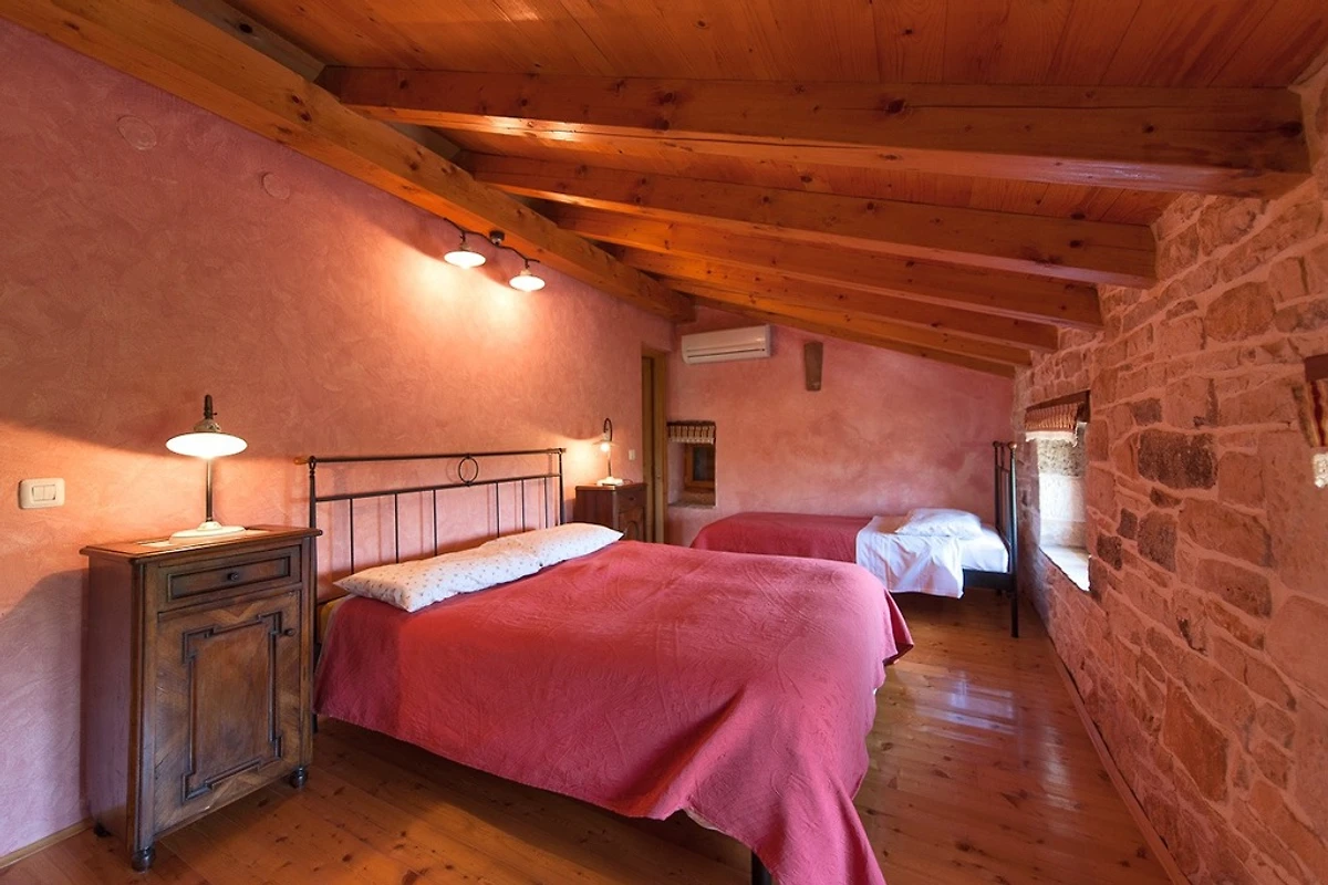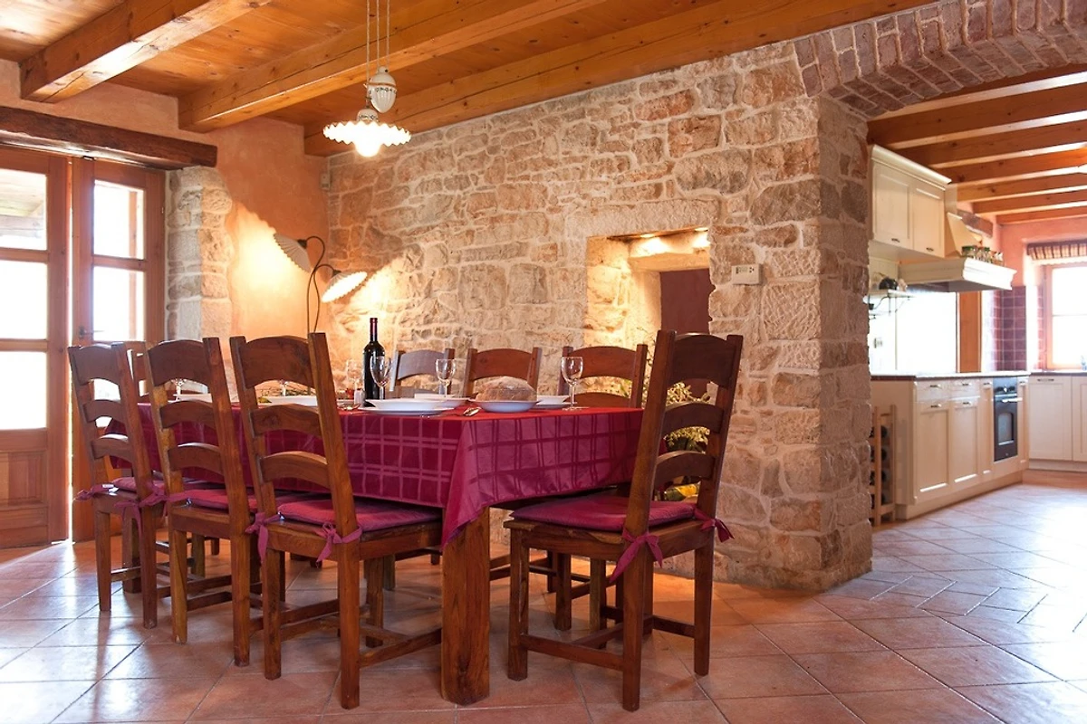 Villa Relax mit Pool in der Nähe von Pula. Diese schöne Villa verfügt über 4 Schlafzimmer und 4 Badezimmer. Die Villa ist voll klimatisiert, verfügt über Sat-TV und Internetzugang. Das Wohnzimmer ist mit einer voll ausgestatteten Küche verbunden, in der Sie alles finden, was Sie zum Zubereiten von Mahlzeiten benötigen. Die Lage der Villa bietet Privatsphäre von der Stadt. Am Abend können Sie auch die Feuerstelle im Freien mit einer Vielzahl von Fischen genießen. Dies ist die ideale Unterkunft für Familien und Gruppen.
