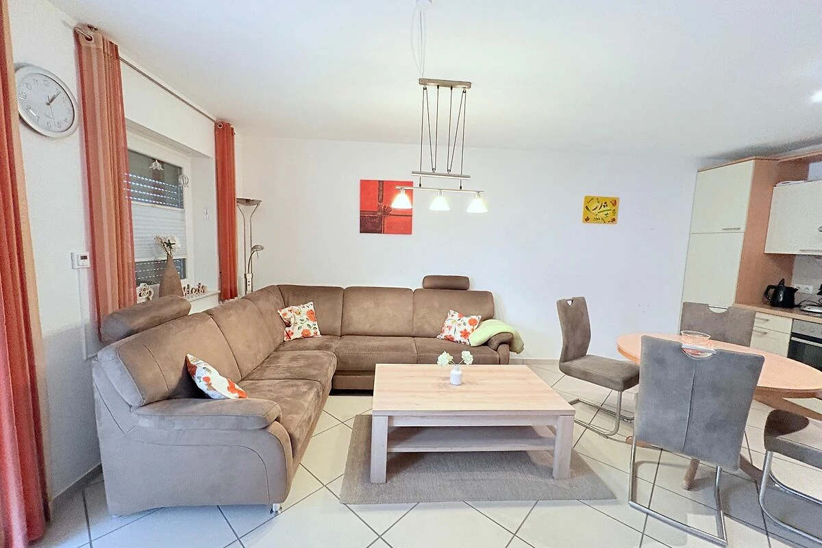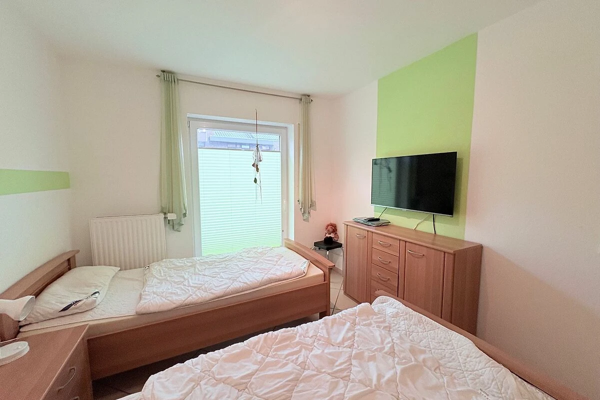 Die helle, geräumige Wohnung mit Internet-Anschluss (WLAN) ist für 4 Personen geeignet. Sie besteht aus einem Wohnzimmer mit Küchenzeile, 2 separaten Schlafzimmern, Duschbad, Abstellraum und Terasse.