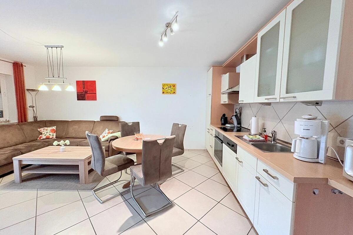 • Komfortable Küchenausstattung: Cerankochfeld, Backofen, Kühlschrank, Spülmaschine, Kaffeemaschine, Toaster, Warmwasserbereiter, umfangreiches Geschirr