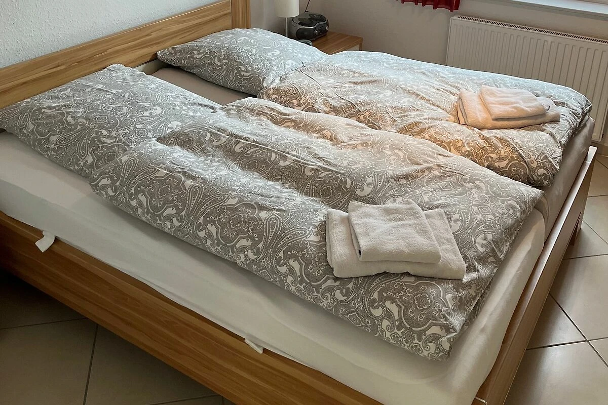 Das Doppelzimmer und das Drei-Bett-Zimmer bieten ausreichend Platz für erholsame Nächte. Ein modernes Badezimmer mit Dusche/WC sowie ein Gäste-WC ergänzen die Annehmlichkeiten dieser Wohnung.