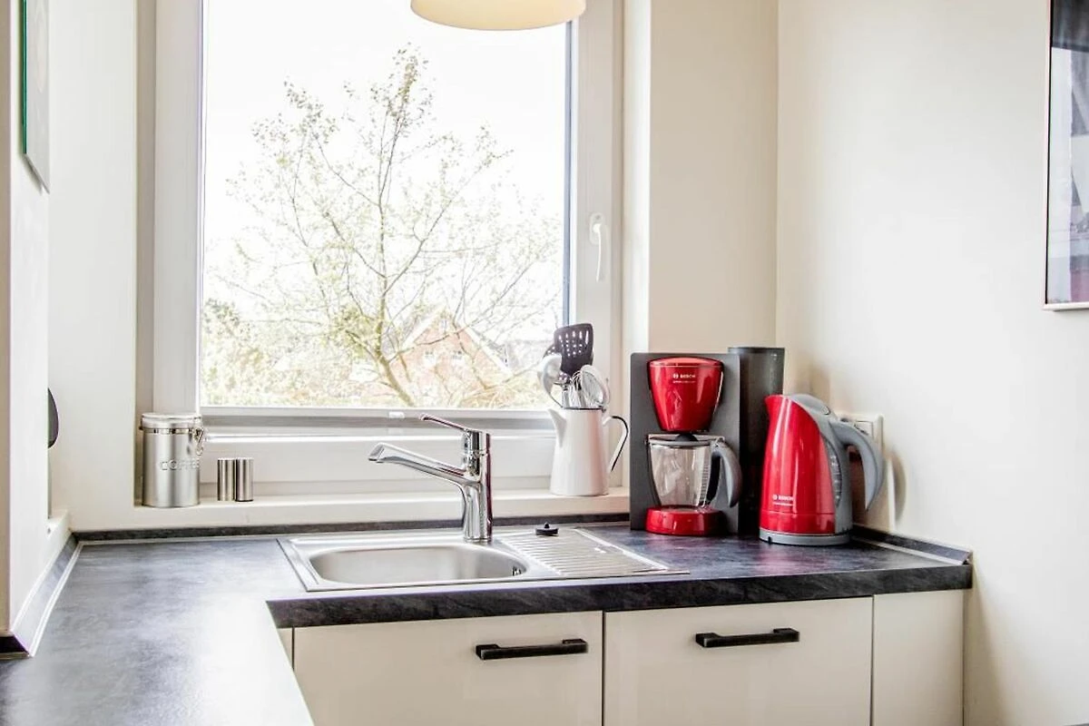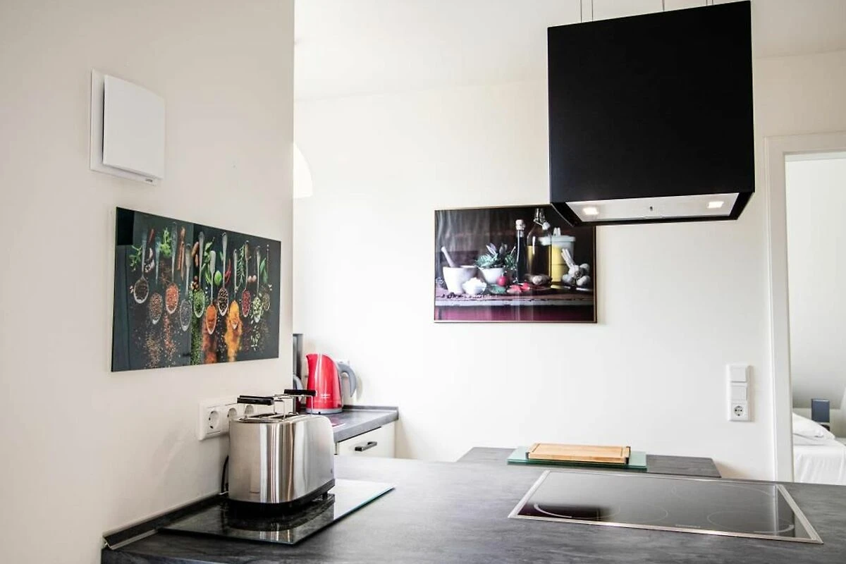 Mikrowelle, Backofen, Kühlschrank, Geschirrspüler, Gefrierfach, Wasserkocher, Kaffeemaschine, Toaster, Küchenzeile, Ofen, Induktionskochfeld, Geschirr, Fussbodenheizung, Esstisch,