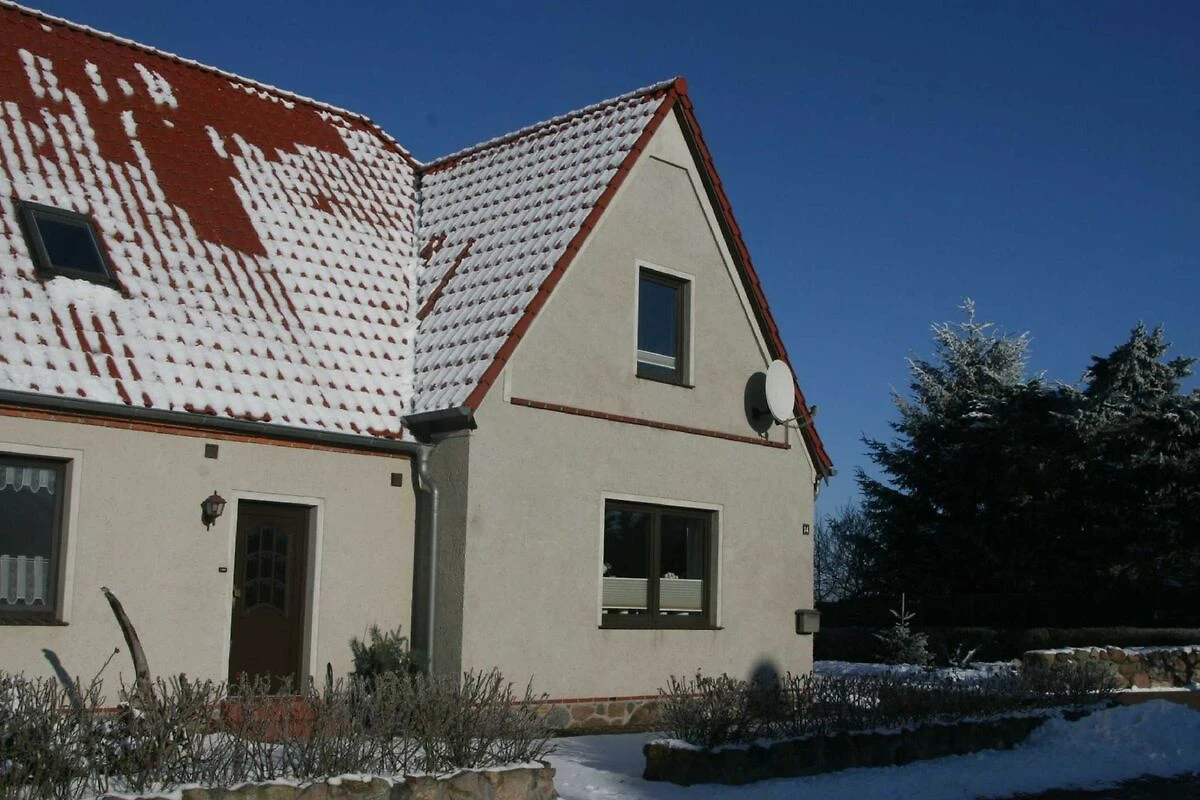 Landhaus mit 3-Raum-Ferienwohnung (max 4 Pers. + 1 Baby, 63m²) mit Terrasse, Parkplatz und separatem Eingang, im Erdgeschoss des typisch Mecklenburgischen Reihenhauses (Baujahr 1899) mit 3.000m² grossem und sehr gepflegtem Gartengrundstück im wunderbar ruhigem Gutsdorf.