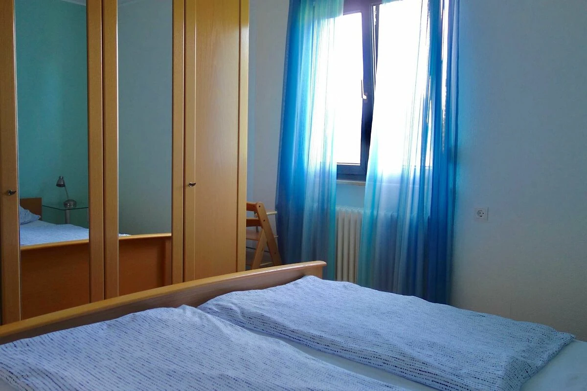 Grosse 3- Zimmerwohnung mit Balkon , grosser Wohnbereich mit Essecke , Einbauküche mit Elektroherd , Spülmaschine , Mikrowelle , Kühlschrank und Gefrierschrank . Flachbildfernseher , W-LAN , Radio , ein Schlafzimmer mit Doppelbett und ein Schlafzimmer mit zwei Einzelbetten .