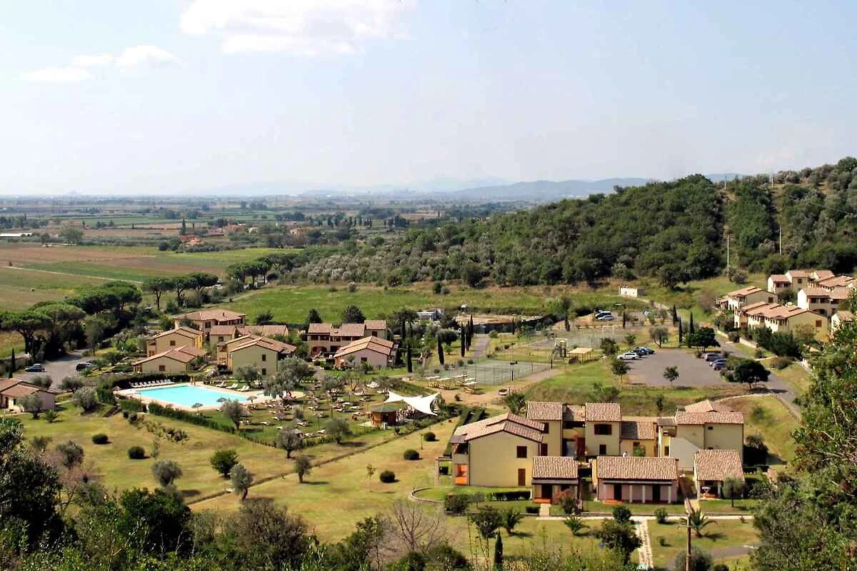 Suvereto. Die Ferienwohnung befindet sich in einer Residenz, auf einem geschlossenen Grundstück mit Wiese, Blumen und Sträuchern. Die Residenz liegt am Fusse eines Hügels mit Blick auf die Ebene von Cornia. Die Wohnung befindet sich im ersten Stock. Die Zufahrt erfolgt direkt von der Hauptstrasse (asphaltiert). Parkplatz auf dem Grundstück.