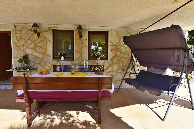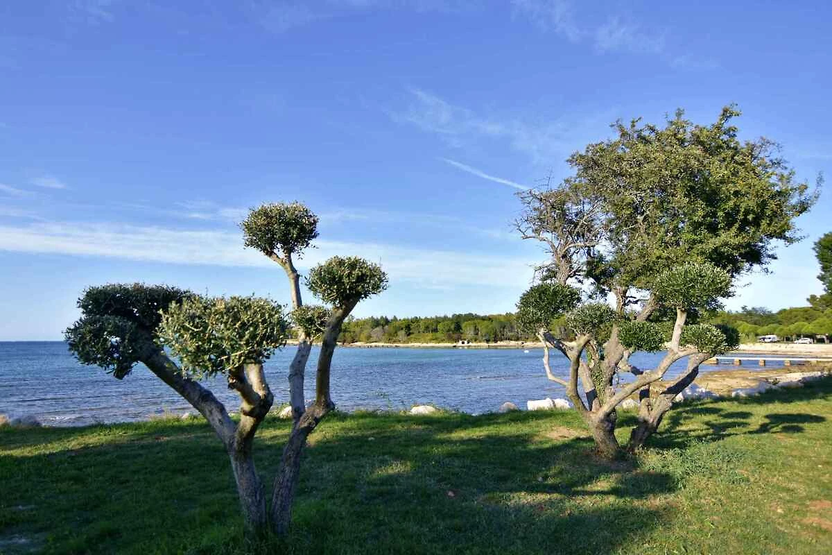 Savudrija. Die Ferienwohnung befindet sich auf einem Gartengrundstück mit Wiese, Blumen, Sträuchern und Bäumen. Der Vermieter wohnt nicht im Haus oder auf dem Grundstück. Die Zufahrt erfolgt über eine Nebenstrasse (Geröll oder Schotter, Länge 150 m). Parkplatz (für 2 Pkws) auf dem Grundstück und einem Parkplatz im Ort (Entfernung 5 m).