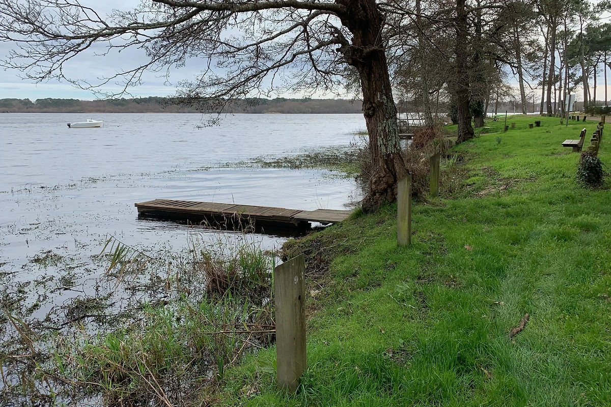 Hinter dem Haus liegt der See von Aureilhan, dorthin können Sie bequem über einen Fussweg durch den Wald oder mit dem Fahrrad oder Auto gelangen.