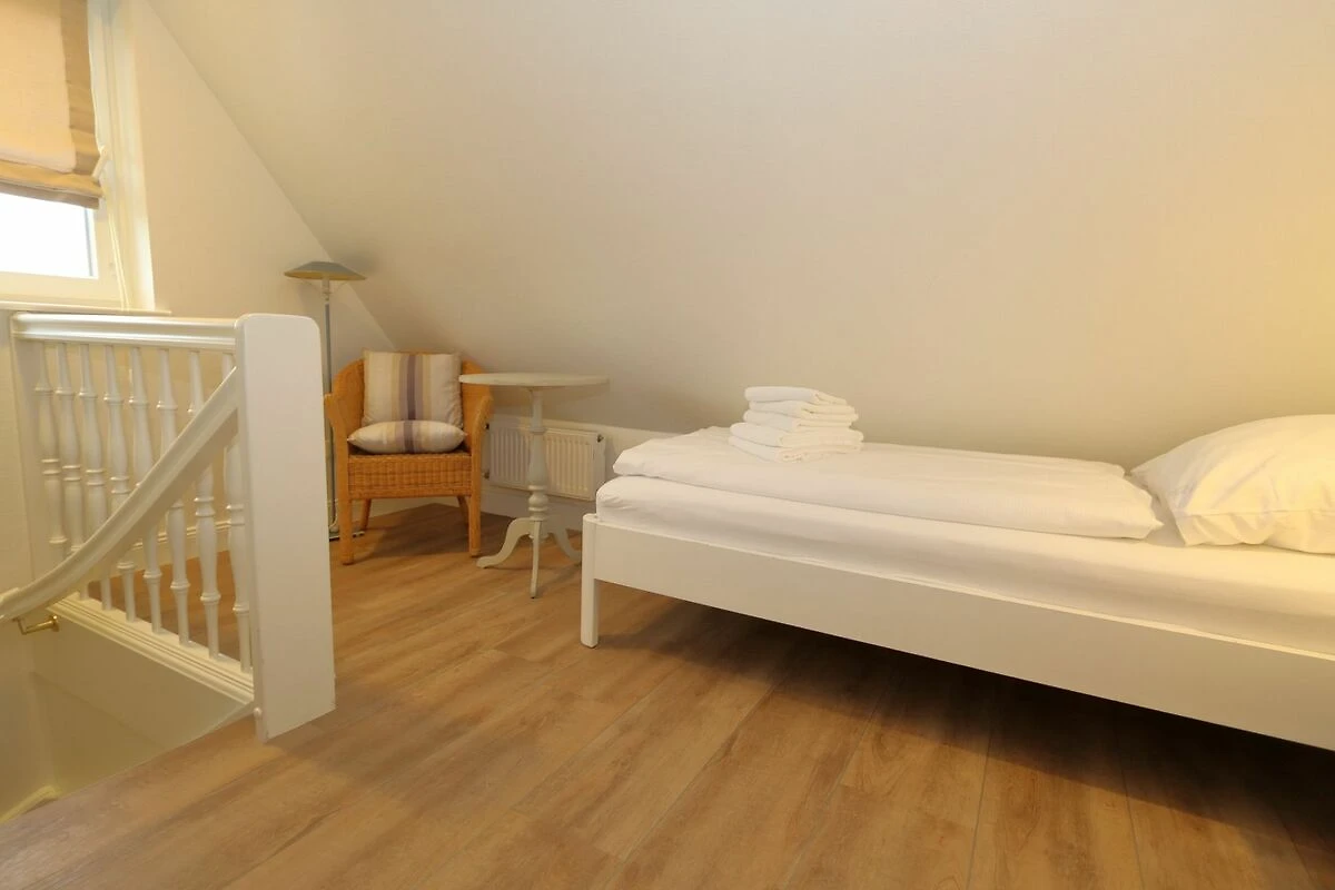 Weiterhin gibt es im Haus zwei Schlafzimmer mit Doppelbetten und ein Schlafzimmer mit einem Einzelbett, welches zum Treppenhaus offen ist.