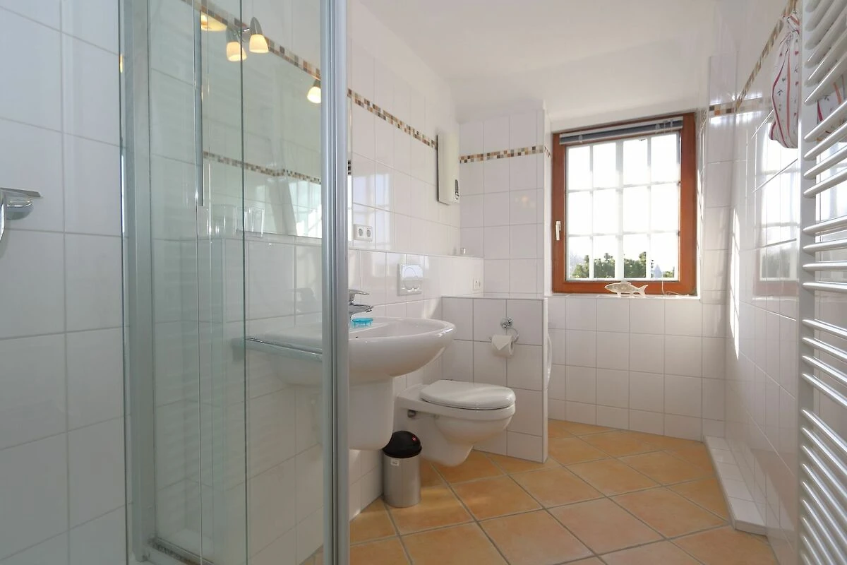 Das Appartement ist komplett renoviert und mit hochwertigen Tischleieinbauten ausgestattet. Im grosszügigen Wohnzimmer stehen die Couchgarnitur und der Essplatz, WLAN ist vorhanden. Ausserdem ist hier die Küchenzeile. Vom Essplatz hat man einen weiten Blick über Wiesen. Auch das Watt kann man vom Wohnzimer aus sehen. Zwei Schlafzimmer mit Doppelbetten sind vorhanden. In dem Duschbad mit Fenster steht auch die Waschmaschine. Zum Appartement gehört ein eigener Gartenanteil mit den entsprechenden Gartenmöbeln und Strandkorb.