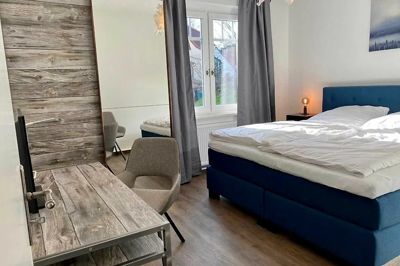 • zwei Schlafzimmer mit jeweils einem 2x2m grossen Boxspringbett, einem 32 Zoll Flachbildfernseher, einem Schreibtisch mit entsprechenden Sitzgelegenheiten und einem grossen Kleiderschrank