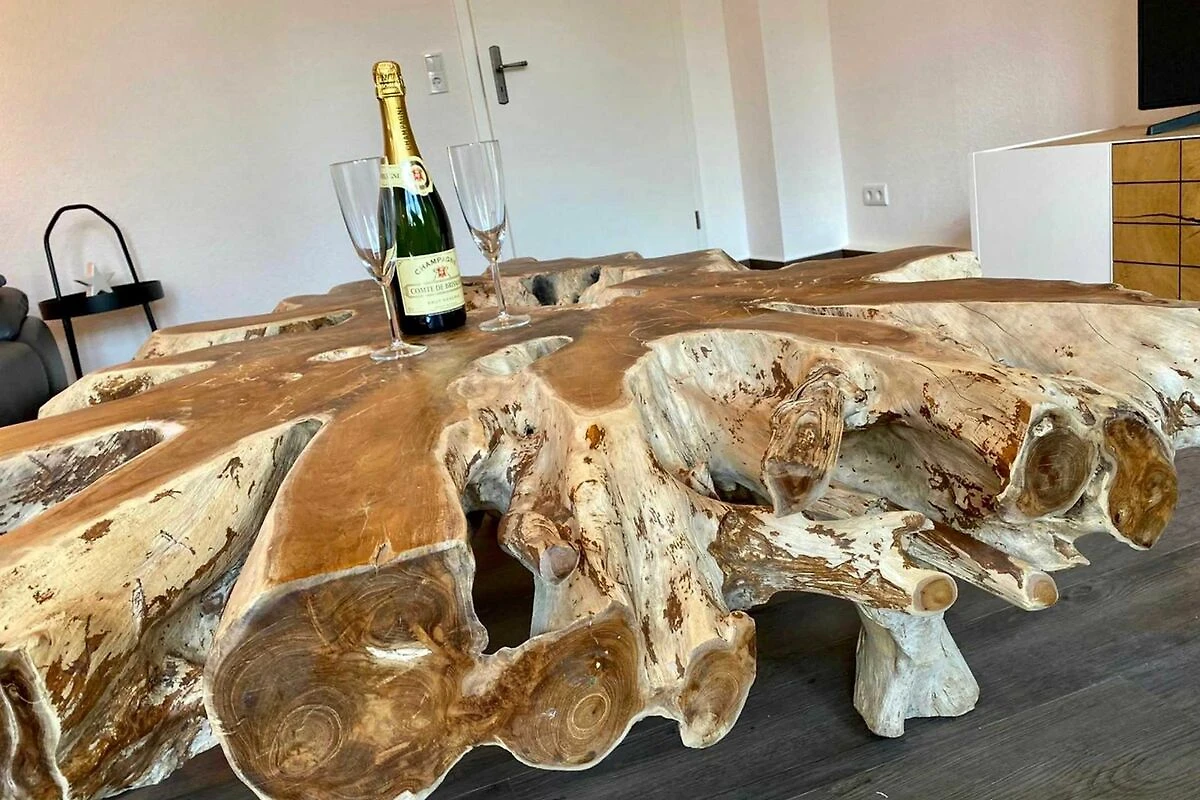 • exklusive Einrichtung: XXL-Sofa, Einbauküche, traumhafte 2x2m Boxspringbetten