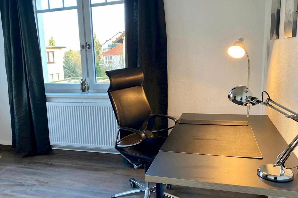 • Arbeitszimmer mit einem Schreibtisch und Sitzgelegenheit