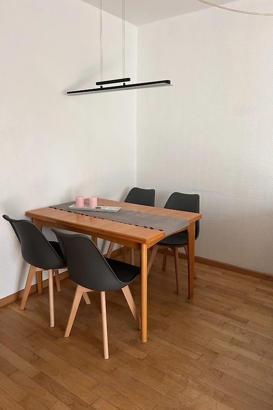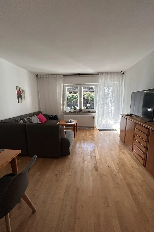 Im Erdgeschoss befinden sich die Küche, die klein aber fein ist, der Wohnraum mit einer gemütlichen Couch über Eck, Essplatz und Fernseher, Abstellraum mit Waschmaschine, Gäste WC.