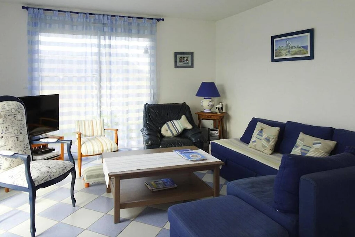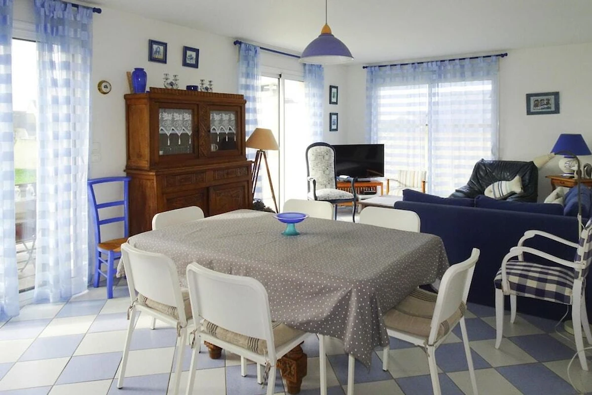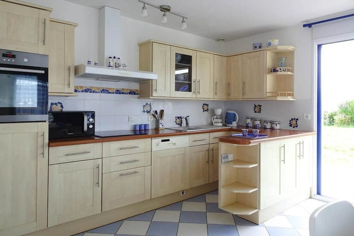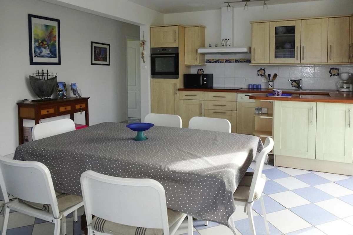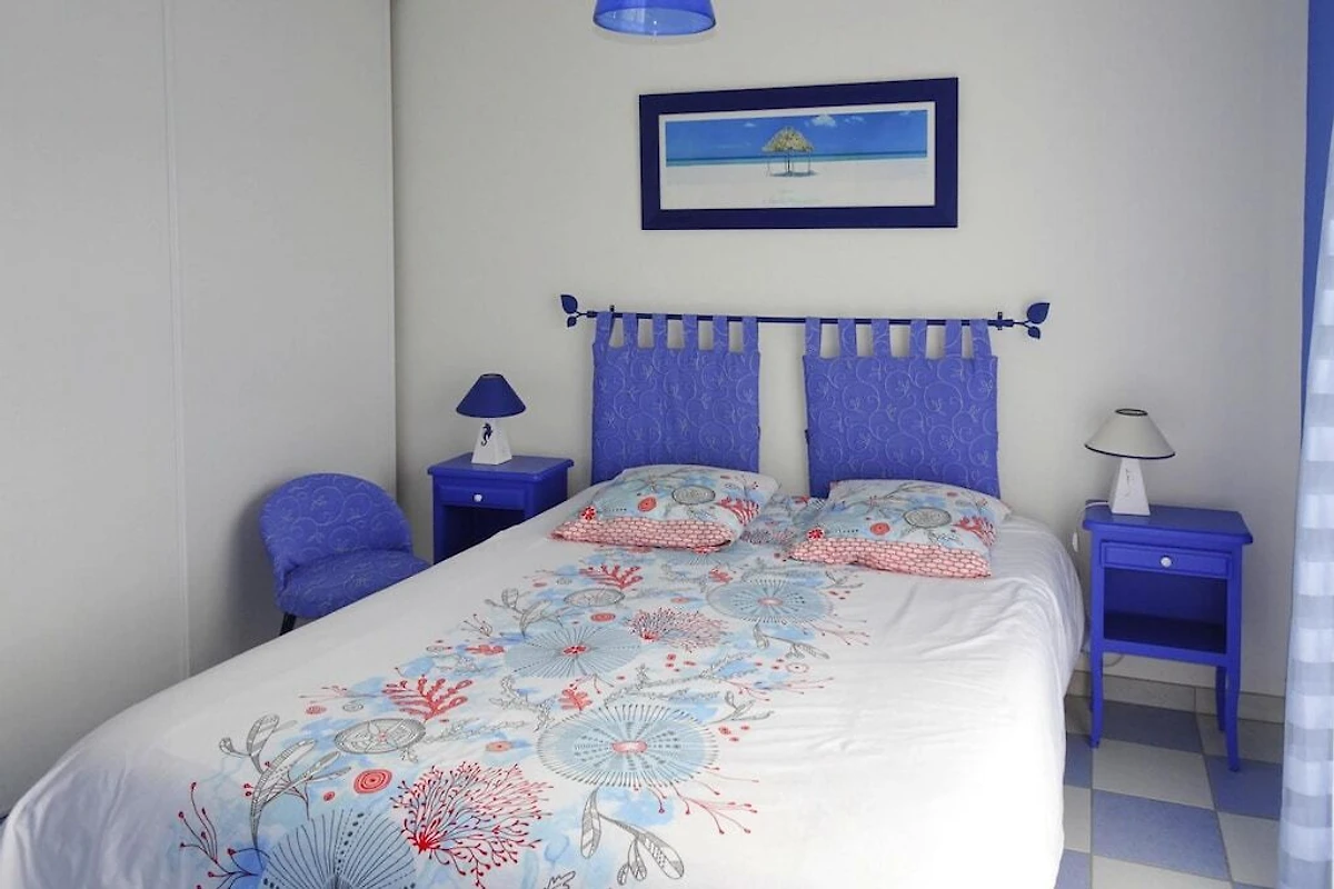 Komfortables Ferienhaus mit maritimem Flair am Rande eines lebhaften Fischerdorfes, nur wenige hundert Meter von einem schönen Sandstrand entfernt. Die harmonische blaue Farbpalette sorgt für eine entspannte Urlaubsstimmung. Auf dem großzügigen Gartengrundstück können mehrere Autos geparkt werden, und die malerische Küstenlandschaft lädt zu ausgedehnten Spaziergängen ein. Besuchen Sie in Le Guilvinec das Fischereimuseum Haliotika, um Einblicke in die Unterwasserwelt und die lokale Fischerei zu erhalten, und genießen Sie frische Meeresfrüchte aus den nahe gelegenen Fischgeschäften. Verbringen Sie Ihre Abende mit einem Sonnenuntergang auf der Terrasse oder erkunden Sie den örtlichen Hafen.