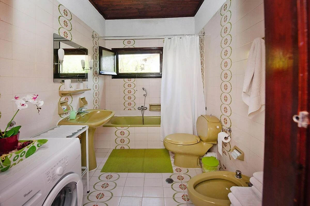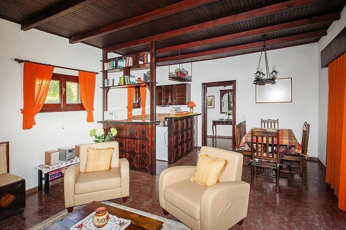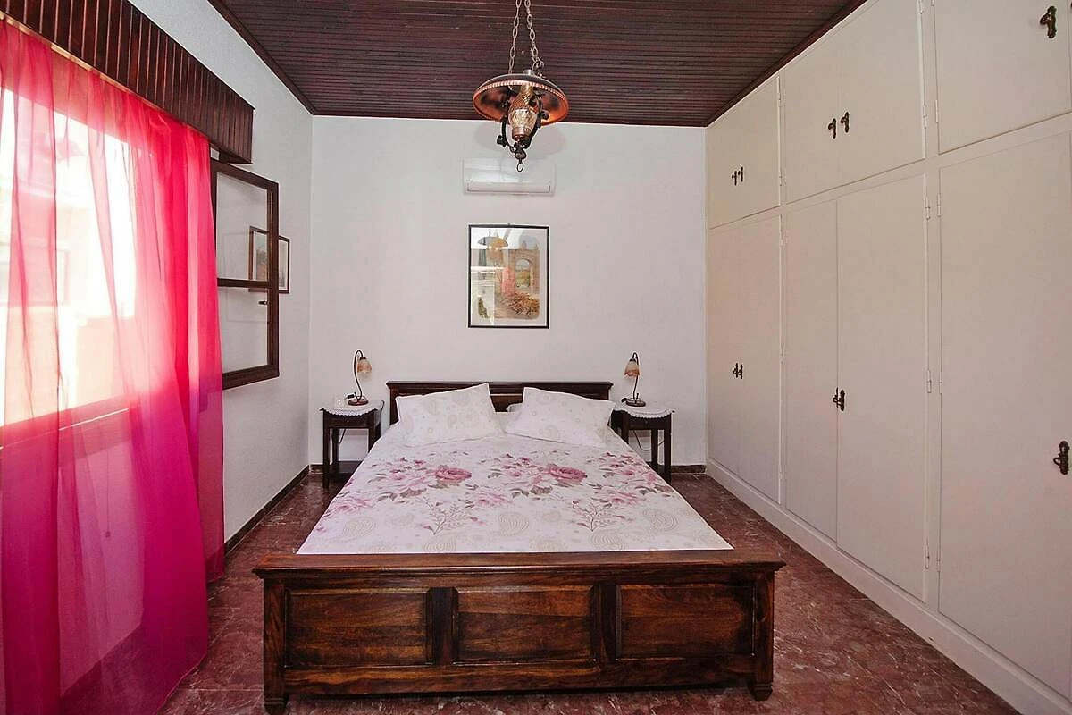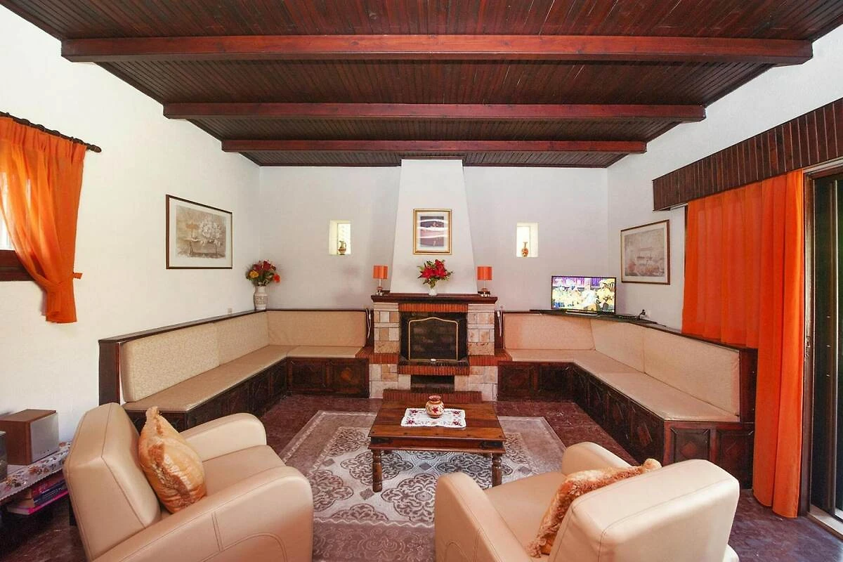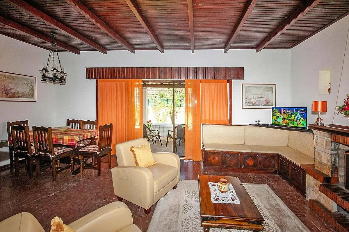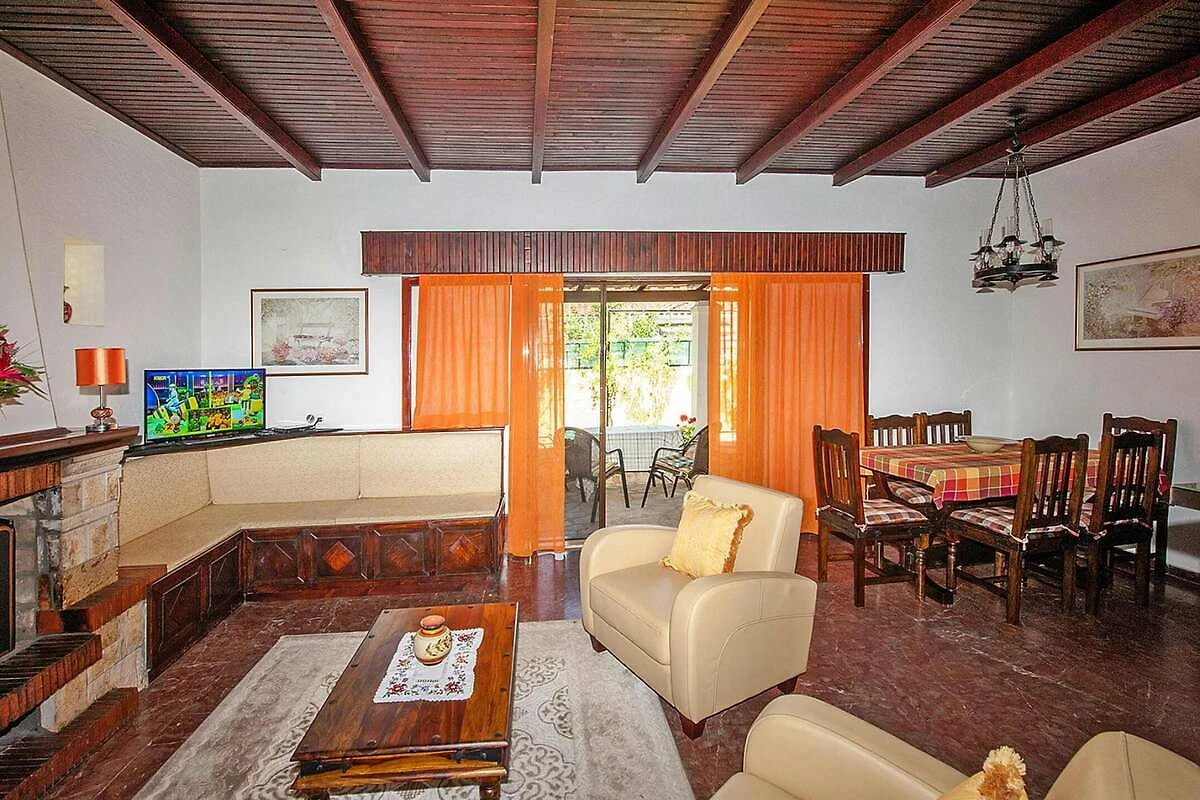 Im Inneren lädt ein gemütlicher Wohnbereich mit Fernseher zum Entspannen nach einem erlebnisreichen Tag an der Küste ein. Die offene, voll ausgestattete Küche macht die Zubereitung von Mahlzeiten im Alltag einfach und angenehm. Die Villa bietet Platz für bis zu 5 Gäste in einem Schlafzimmer mit Doppelbett und einem zweiten Schlafzimmer mit zwei Einzelbetten und einem Klappbett – ideal für Erwachsene und Kinder. Ein modernes Badezimmer mit Badewanne rundet das Interieur ab. Klimaanlage (gegen Aufpreis) und eine Waschmaschine sorgen für zusätzlichen Komfort.