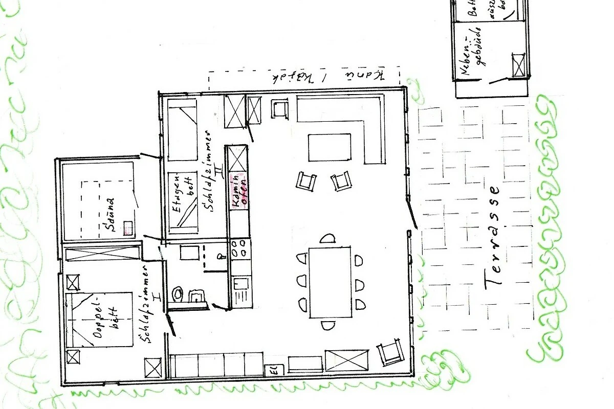 Im kleinen Nebenhaus befindet sich ein Doppelbett und damit zwei weitere Schlafplätze (ggf. für Jugendliche, die ihren eigenen Bereich haben möchten).