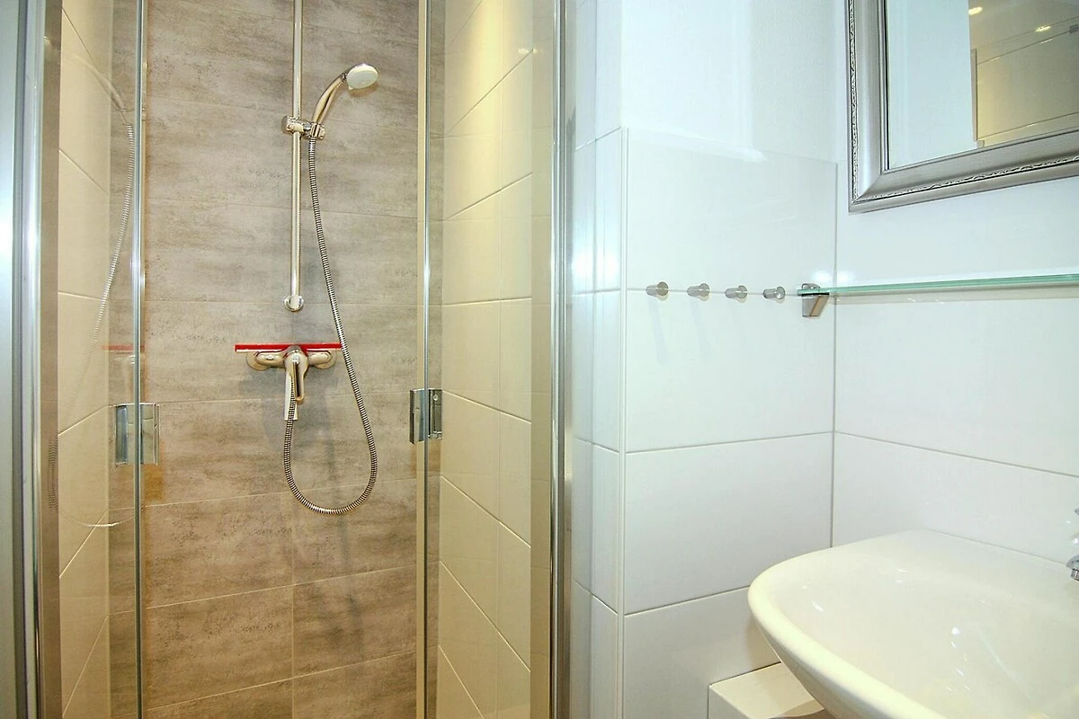 In der 4. Etage: (offene Küche(Kochplatte(4 Kochplatten, Ceranfeld), Wasserkocher, Toaster, Kaffeemaschine, Mikrowelle, Spülmaschine, Kühl-/Gefrierkombination), Wohn-/Schlafzimmer(Doppelschlafcouch, TV(Kabel), DVD-Spieler), Badezimmer(Dusche, Toilette))