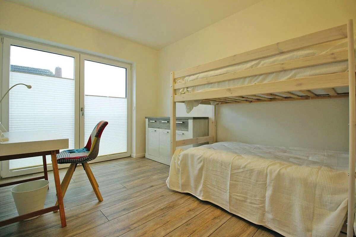 In der 1. Etage: (Schlafzimmer(Doppelbett), Schlafzimmer(Etagenbett), Badezimmer(Dusche, Waschbecken, Toilette))