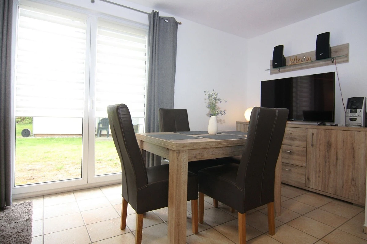 Dieses moderne und gemütliche Appartement befindet sich in einem Appartementhaus nur 300 m vom Sandstrand und der Promenade entfernt. Ihre Unterkunft befindet sich am Rande der kleinen, familienfreundlichen Ferienanlage Strandidyll, in dem Haus, das am dichtesten zum herrlich langläufigen Strand liegt. Das Appartement befindet sich im Erdgeschoss mit eigener Terrasse in ruhiger Lage. Es ist modern und ansprechend ausgestattet mit allem, was man für einen erholsamen Urlaub benötigt. Im Hauptschlafzimmer erwartet die Gäste ein neues Doppel-Boxspringbett. Gäste, die mit dem Pkw anreisen, können diesen auf dem zur Unterkunft gehörenden Parkplatz abstellen. Trassenheide ist ein ruhigeres Seebad im Norden Usedoms, das bei Erholungssuchenden und Wasserratten gleichermaßen beliebt ist. Nur 3 Kilometer entfernt liegt der etwas lebhaftere Ort Zinnowitz, den sie bequem bei einem Strandspaziergang erreichen können. Die 3 Kaiserbäder Bansin, Heringsdorf und Ahlbeck sind zwischen 26 und 30 km.