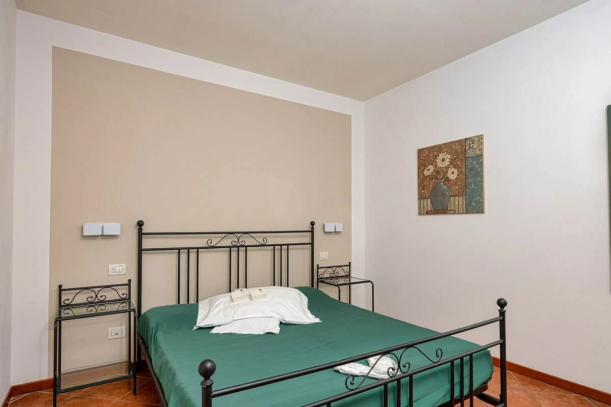 Wohnzimmer(Doppelschlafcouch, TV(Satellit, Deutsch Fernsehsender)), Kochnische(Kochplatte(4 Kochplatten, elektrisch), Kühlschrank), Schlafzimmer(Doppelbett), Badezimmer(Dusche, Toilette), Wasserrutsche, Bar, Balkon oder Terrasse, Heizung, Klimaanlage, Gartenmöbel, Liegen, Parkplatz, Pool(Gemeinschaftliche Nutzung mit anderen Gästen, Seperates Kinderschwimmbad (Tiefe 50 cm), geöffnet von Mai bis einschließlich Sep)