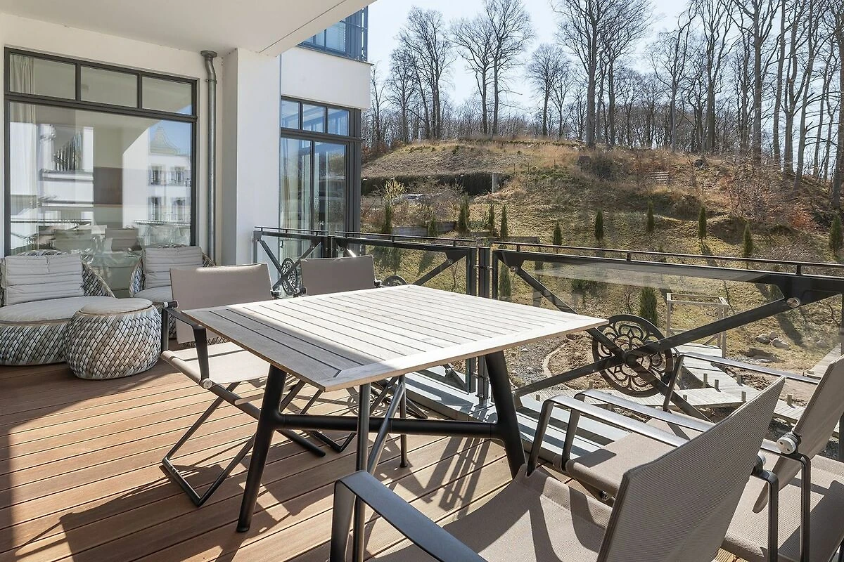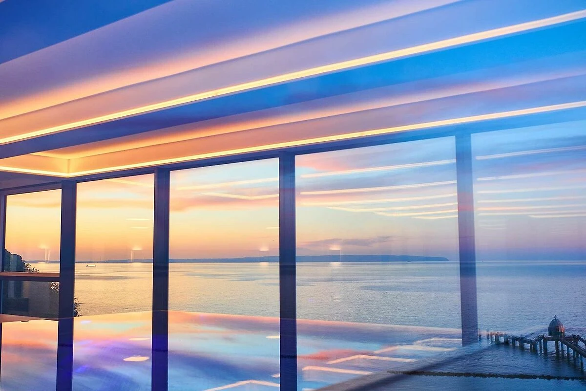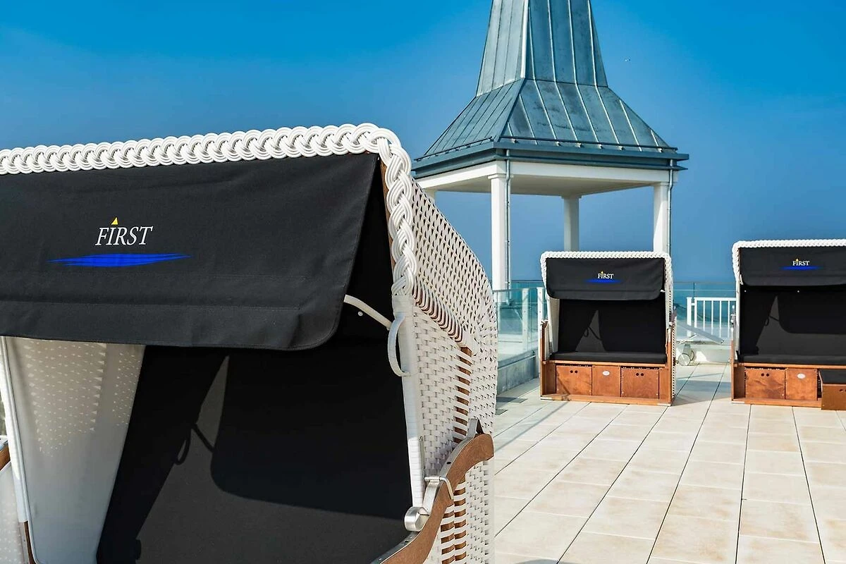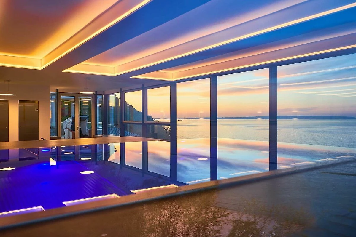 Jetzt mit Zugang zur Wellnessoase im Dachgeschoss der Villa First , Infinity-Innenpool mit 28 grad Wassertemperatur und atemberaubende Aussicht auf die Ostsee, 2 Saunen mit Blick auf die Kreidefelsen und Zugang zu der Dachterrasse mit Strandkörben (separat zubuchbar).