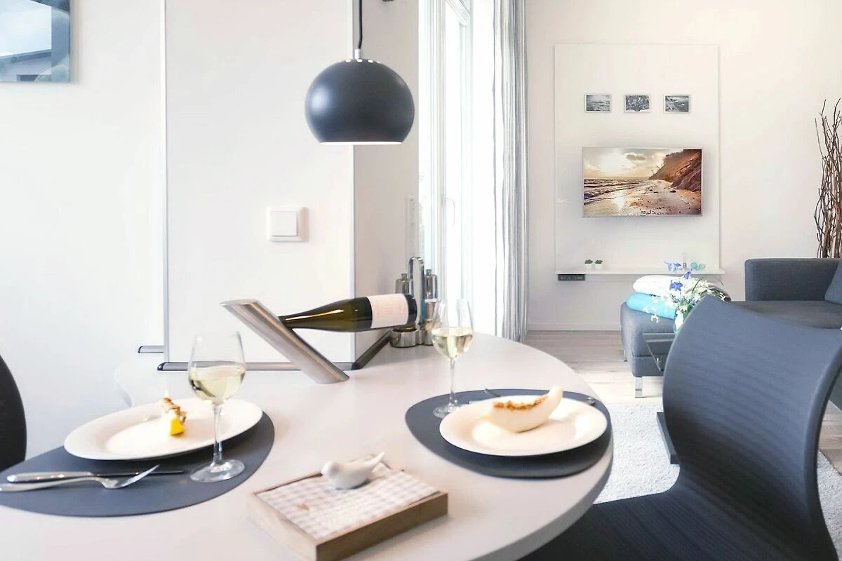 Gesundheitsmatratzen und Oberbetten werden in Sondergrösse (155x220 cm) bereitgestellt, so dass zu jeder Jahreszeit Ihre ganz individuellen Schlafbedürfnisse vollumfänglich erfüllt werden können. WLAN, Einstellplatz, Aufzug und moderne Technik gehören selbstverständlich zum Standard der Ferienwohnung „Einkehr“. Der wohnungseigene Strandkorb rundet dieses Wohlfühlerlebnis ab und garantiert Ihnen ruhige Stunden der Erholung in erstklassiger Umgebung. Darüber hinaus stehen Ihnen zwei Trekkingräder kostenfrei zur Verfügung, damit Sie die wunderschöne Gegend rund um das bekannte Ostseebad Sellin jederzeit entspannt erkunden können.