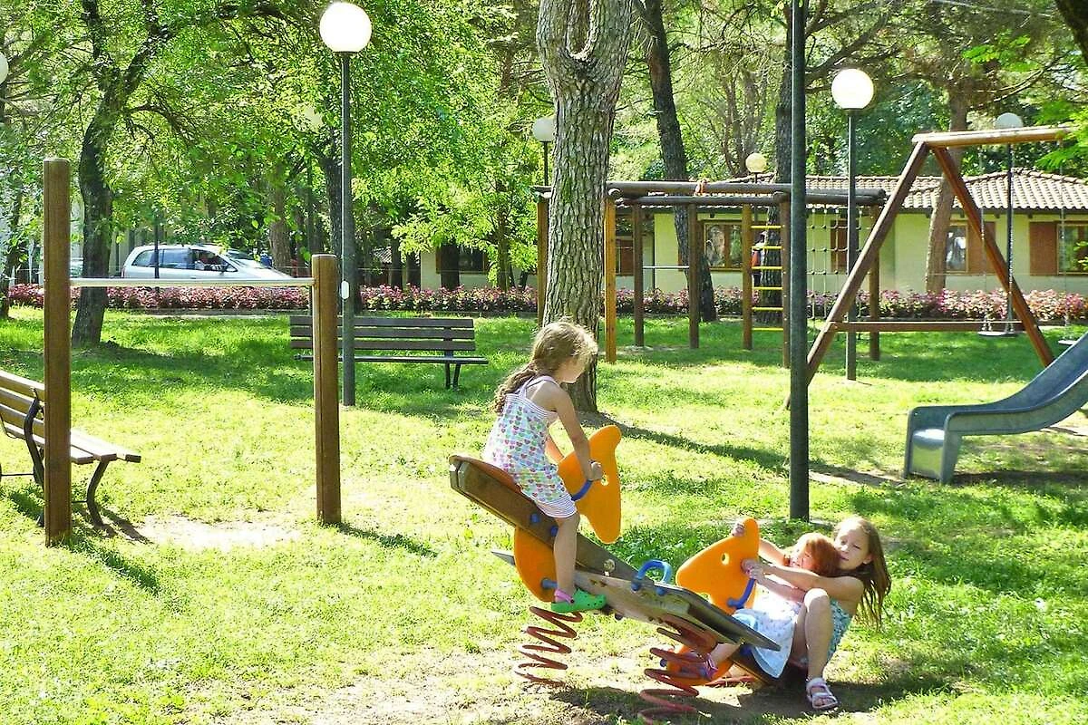Auf dem bewaldeten Gelände eines 50 Hektar großen Naturparks an der Lagune von Grado: Ferienanlage für die ganze Familie. Groß und Klein können sich im 300 Quadratmeter großen Pool erfrischen, für den Spaßfaktor dabei sorgt die Wasserrutsche. Wer lieber in der Lagune badet, erreicht den flachen Sandstrand der Lagune ganz bequem über einen Fußgänger-übergang. Die Unterkünfte des Typ A-E (1-5) liegen in der Nähe der Rezeption, Typ F-H (6-8) befinden sich in Strandnähe.