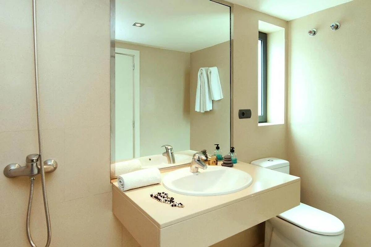 In der 1. Etage: (Schlafzimmer mit Badezimmer(Doppelbett, Badewanne, Toilette), Schlafzimmer mit Badezimmer(Einzelbett, Einzelbett, Dusche, Toilette))
