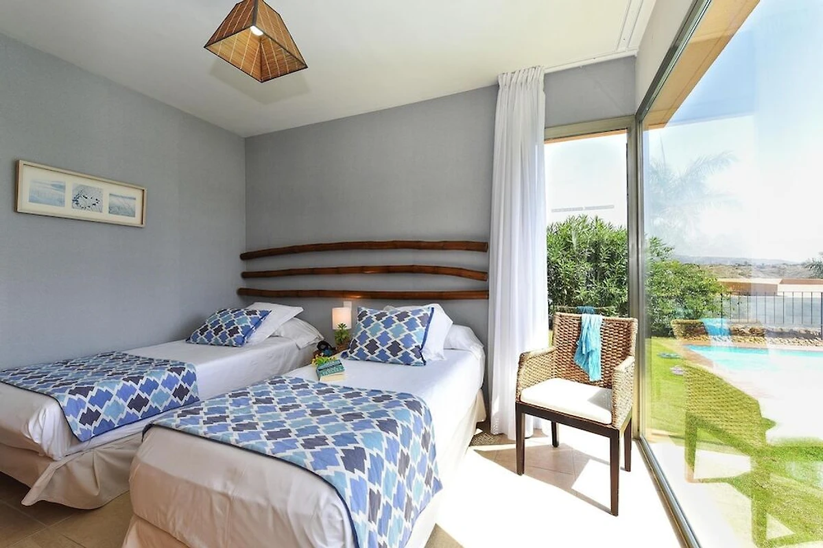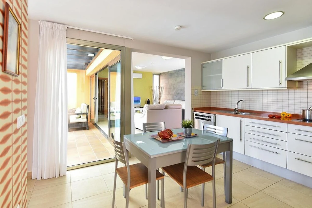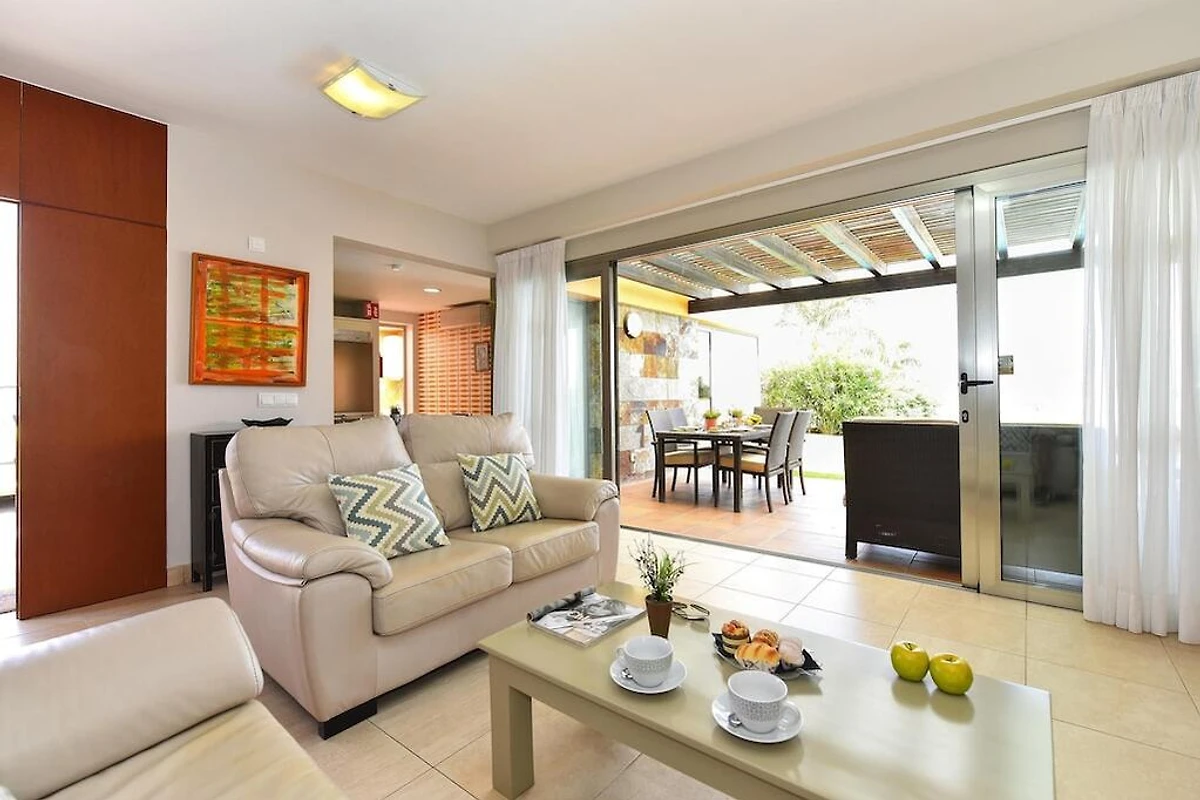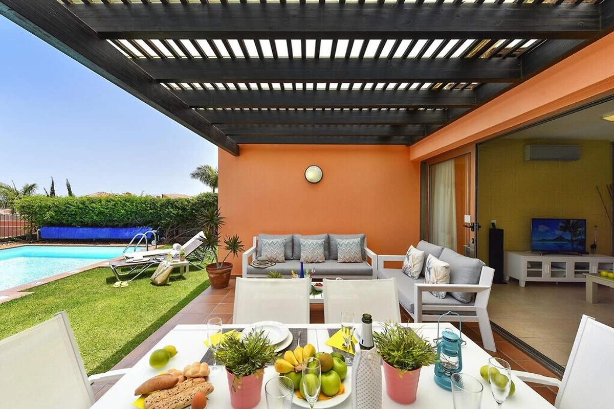 In den Bergen von Maspalomas ist in einer einzigartigen Landschaft dieser exklusive Wohnkomplex am Rande des Golf Resorts entstanden. In unmittelbarer Nähe können Sie sich im Supermarkt für den täglichen Bedarf versorgen, ein Restaurant verwöhnt Sie mit kulinarischen Köstlichkeiten. Die beliebten Touristenzentren Maspalomas und Playa del Ingles erreichen Sie mit dem Auto in knapp zehn Minuten.