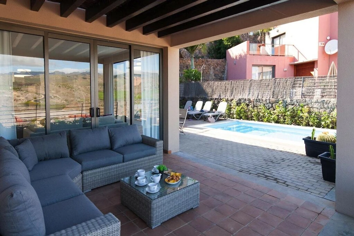 Dieses Ferienhaus mit privatem Außenpool (beheizbar) bietet einen herrlichen Blick über den Golfplatz und ist nur 15 Autominuten vom Strand entfernt. Genießen Sie in der perfekt ausgestatteten Villa Ihren Urlaub auf Gran Canaria und entspannen Sie auf der überdachten Terrasse. Lassen Sie sich außerdem vom täglichen Brötchenservice verwöhnen.