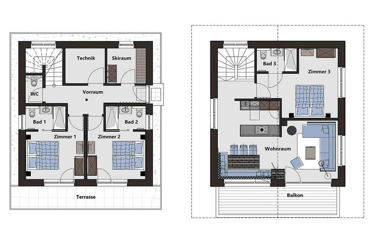 Küche(Herd, Kochplatte(4 Kochplatten, Ceranfeld), Wasserkocher, Toaster, Kaffeemaschine, Backofen, Mikrowelle, Spülmaschine, Kühl-/Gefrierkombination), Wohn/Esszimmer(TV(Satellit), Hochstuhl, Babybett (kostenlos)), Schlafzimmer mit Badezimmer(Doppelbett, Dusche, Toilette), Schlafzimmer mit Badezimmer(Doppelbett, Dusche, Toilette), Schlafzimmer mit Badezimmer(Doppelbett, Dusche, Toilette), Toilette, Skikeller(Skischuhheizung), Carport, Kaminofen, Trockner(gegen Gebühr), Sauna(Gemeinschaftliche Nutzung mit anderen Gästen), Waschmaschine(gegen Gebühr), Balkon