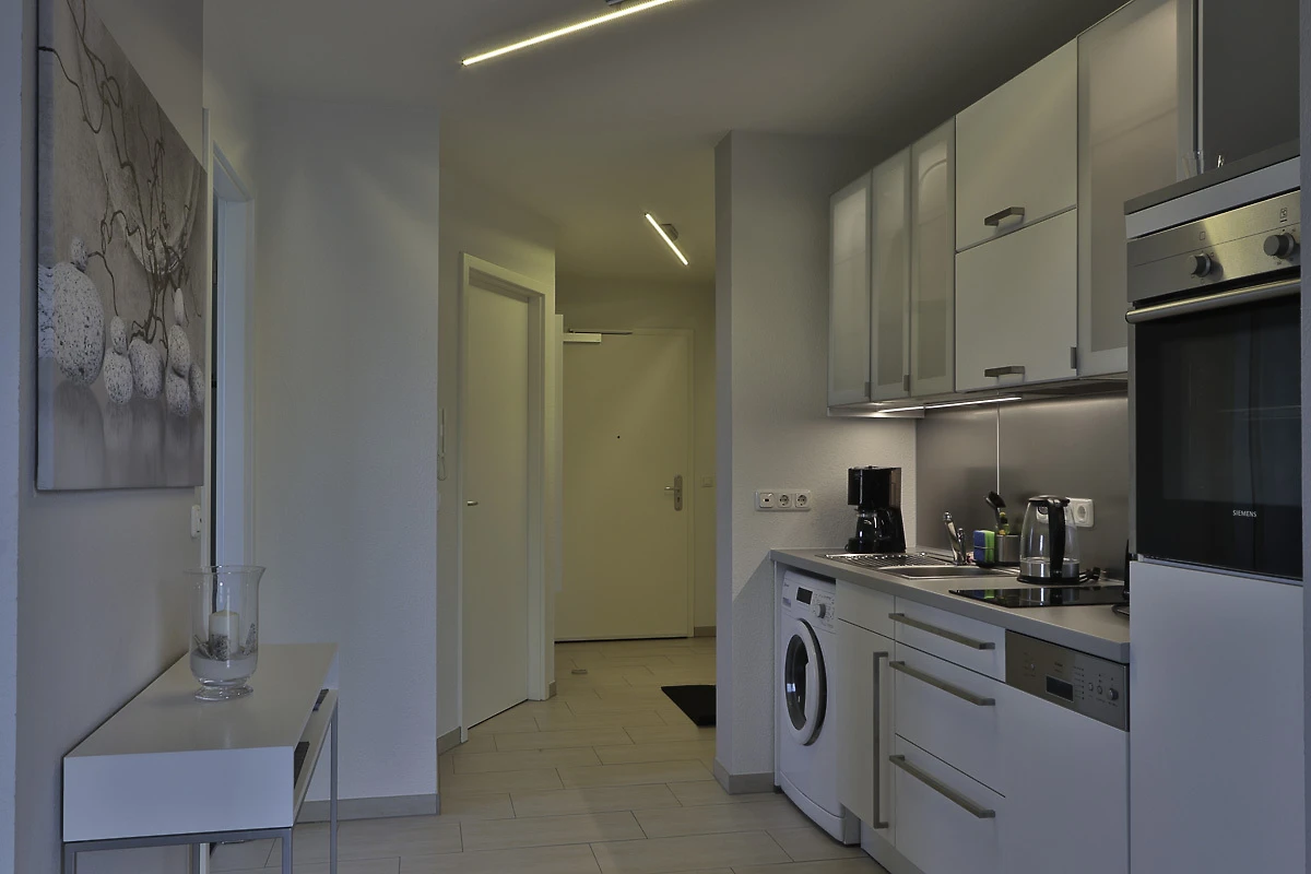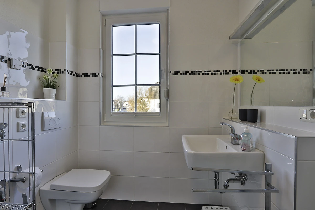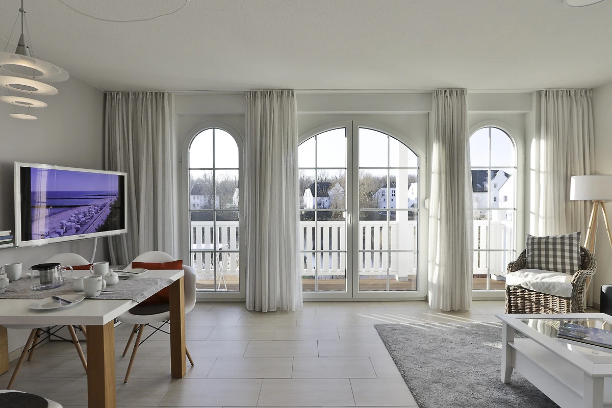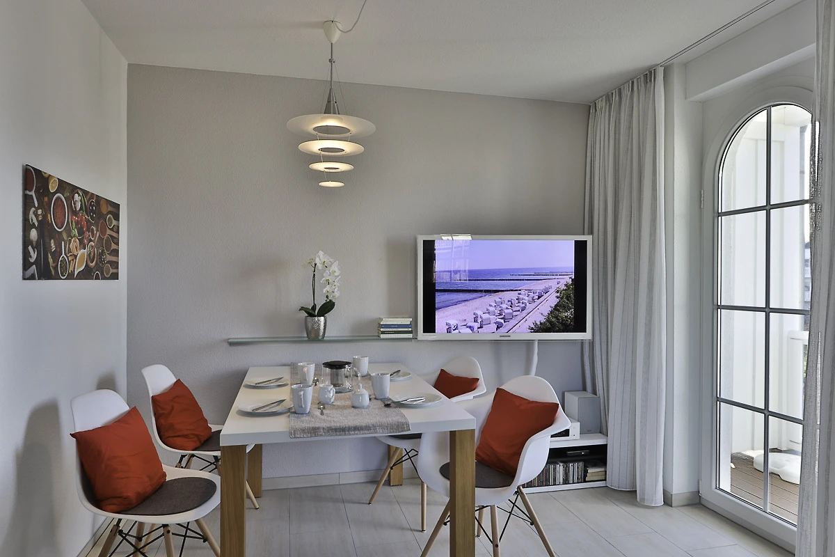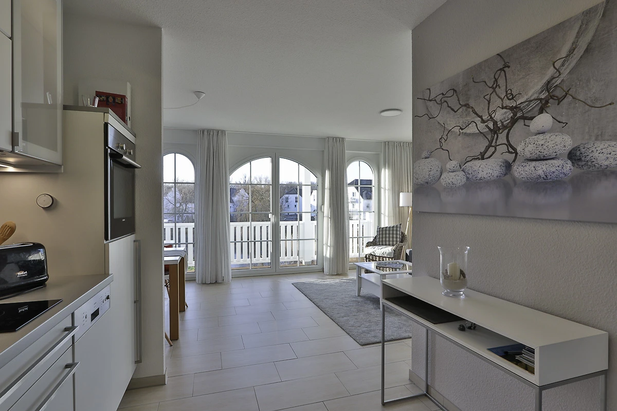 Diese traumhafte Wohnung wurde 2019 komplett renoviert und neu möbliert. Sie befindet sich im 1.OG der Villa Christine, das helle, freundliche Wohnzimmer ist modern eingerichtet und hat eine offene Küche mit allen Dingen, die das Urlaubsleben bequem machen, wie einen Geschirrspüler, Waschmaschine und vieles mehr.Sie haben alle technischen Geräte inkl. wie: CD/DVD/BlueRay Player, Bluetooth Audio, WLAN, Sat-TV mit Timeshift. Auch Bücher und CDs liegen für Sie bereit. Der Blick vom grossen Westbalkon ins Grüne ist sehr erholsam. Das Schlafzimmer hat ein grosses Doppelbett, einen grossen Kleiderschrank und eine Musikanlage. Kinderreisebett und Hochstuhl sind ebenfalls vorhanden. Das Duschbad hat ein Fenster und ein Fön darf natürlich auch nicht fehlen. Die Wohnung ist für 2 - 4 Personen ausgestattet und ein PKW-Stellplatz ist direkt am Haus. Einen Fahrradabstellraum gibt es ebenfalls.