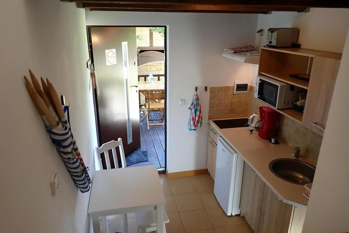 Parterre: (Kochnische(Wasserkocher, Kochendwasserhahn, Toaster, Kochherd(2 Kochplatten, elektrisch), Espressomaschine, Kühl-/Gefrierkombination), Badezimmer(Dusche, Waschbecken, Toilette, Waschmaschine))