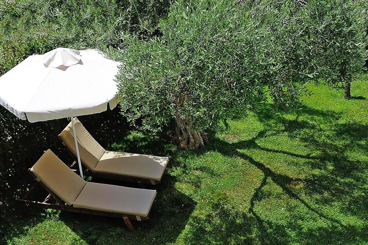 Weite Gebiete umgeben von Olivenbäumen boten Ruhe, und ein kurzer Spaziergang zum Strand war sehr bequem.