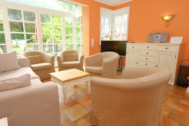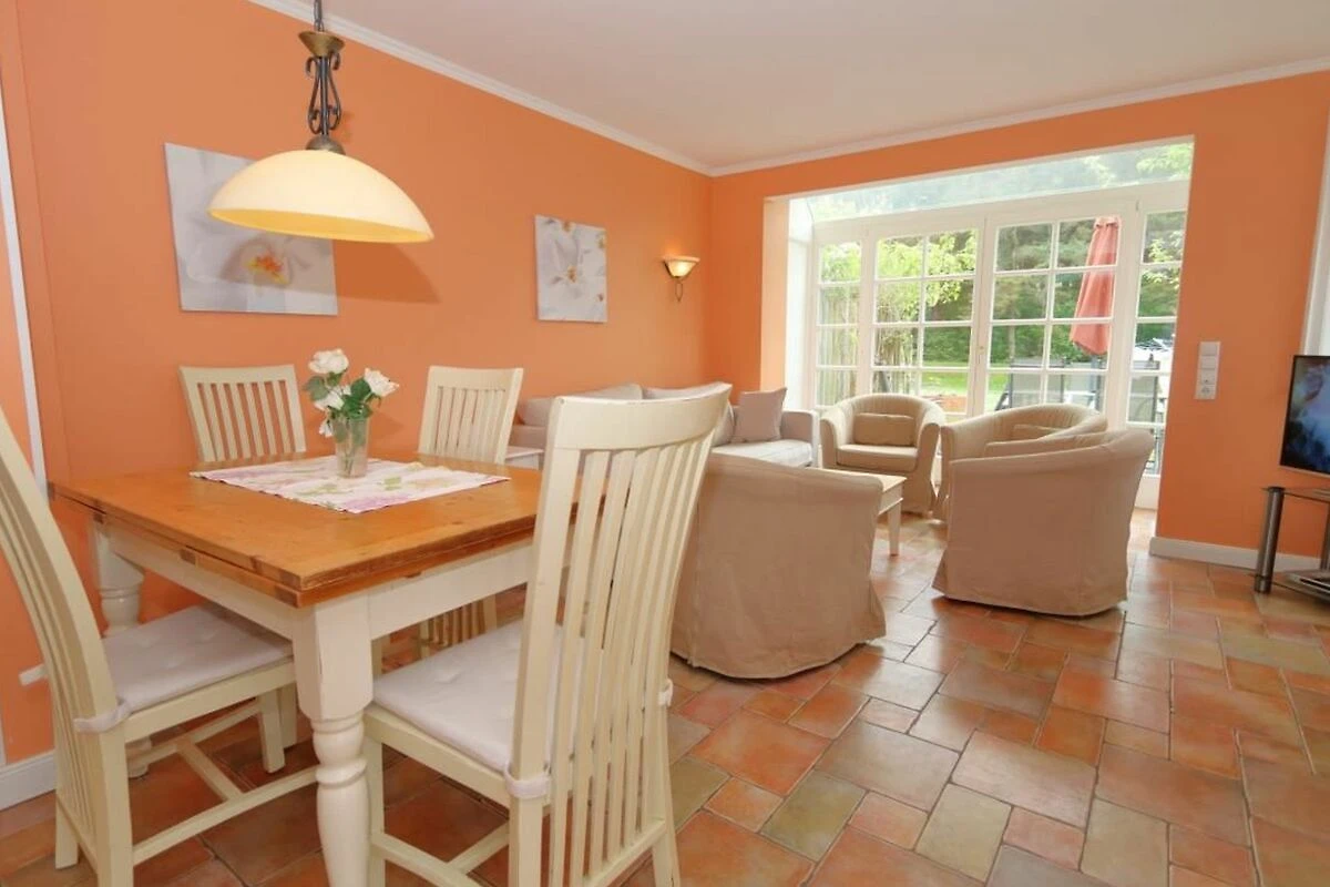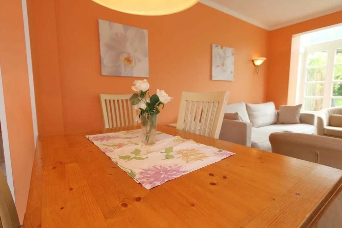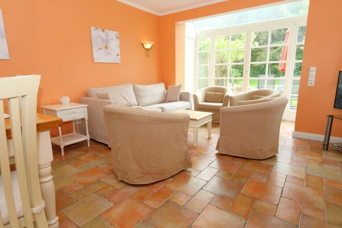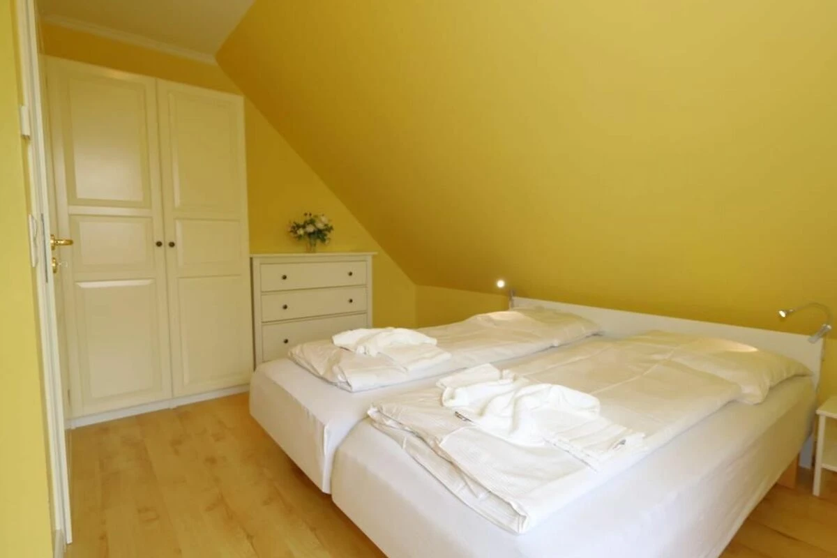 Die schöne Ferienwohnung Thomas Mann liegt direkt am Wald Friedrichshain und verfügt über eine grosse Terrasse für 6 Personen. Die harmonischen Farbnuancen im Wohnzimmer passen wunderbar zur hellen Einrichtung. Das Appartement verfügt über eine gut ausgestattete separate Küche, einen Soutterrain-Bereich und ein Obergeschoss mit modernem Badezimmer mit Duschwanne und zwei Waschbecken und über ein helles Schlafzimmer. Im Soutterain-Bereich befindet sich ebenfalls ein grosses Badezimmer mit zwei Waschbecken und einer Dusche.