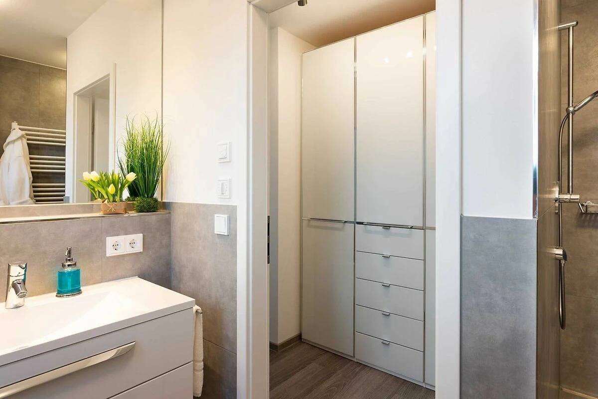 Im Basement der Häuser 1 und 2 befindet sich auf 365 m² ein weiterer Freizeit-, Fitness- und Wellnessbereich mit mehreren Saunen, Fitness-, Massage- und Aufenthaltsraum, Spielzimmer für Kleinkinder, Billard und Kicker, der Ihnen kostenlos zur Verfügung steht und die Interessen jeden Alters berücksichtigt.