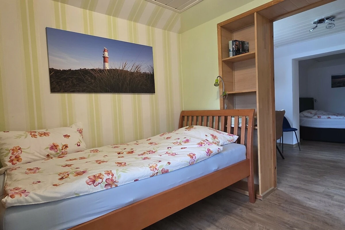 Im Schlafzimmer ruhen Sie in einem Boxspring-Doppelbett 200 x 180 cm mit Oberbetten in Überlänge (155*220 cm). Ein großer Kleiderschrank bietet genug Platz für Ihre Kleidung. Ebenso gibt es einen Schreibtisch für Ihre Urlaubspost oder das Homeoffice. Im Kinderzimmer sind ein Etagenbett und ein Kleiderschrank vorhanden, gerne stellen wir Ihnen auch ein Kinderbettchen bereit. Im Abstell- und Waschraum können Sie die Waschmaschine sowie die Trockenleine nutzen. Weitere Infos entnehmen Sie unserer ausführlichen Website.