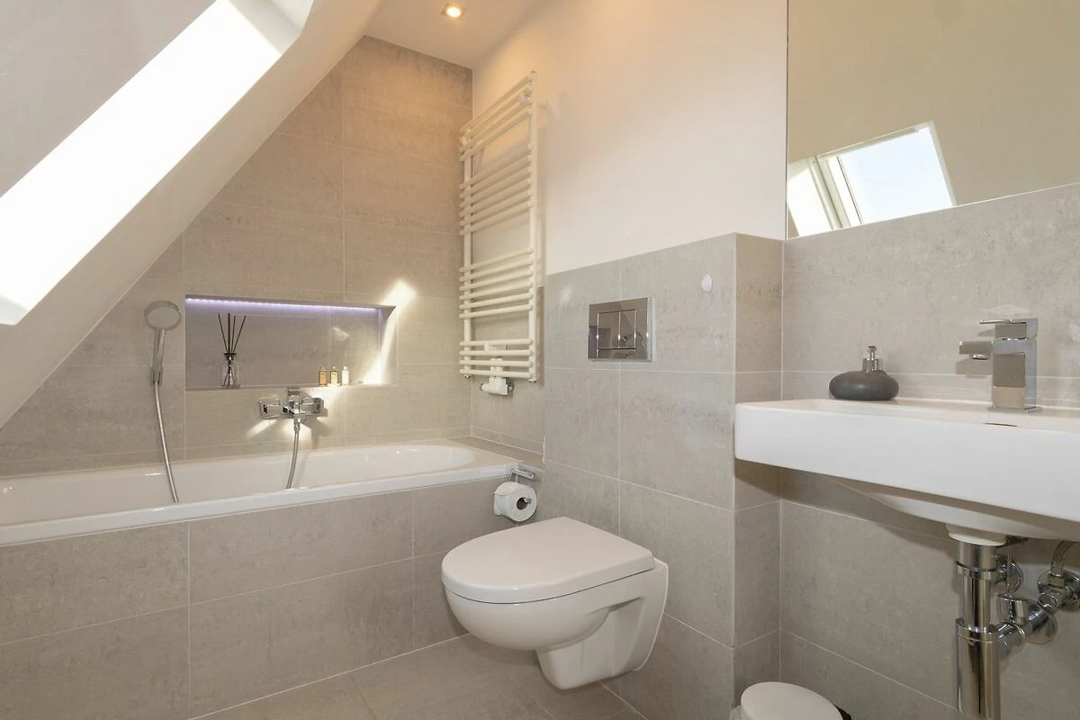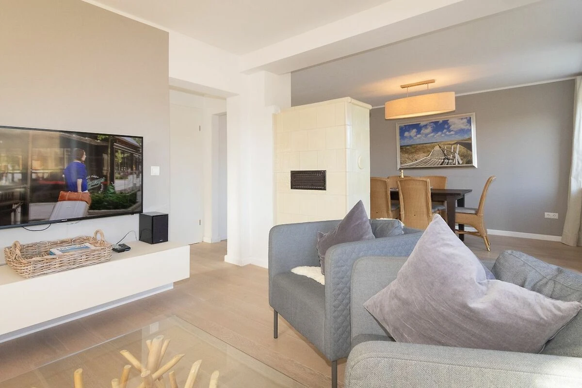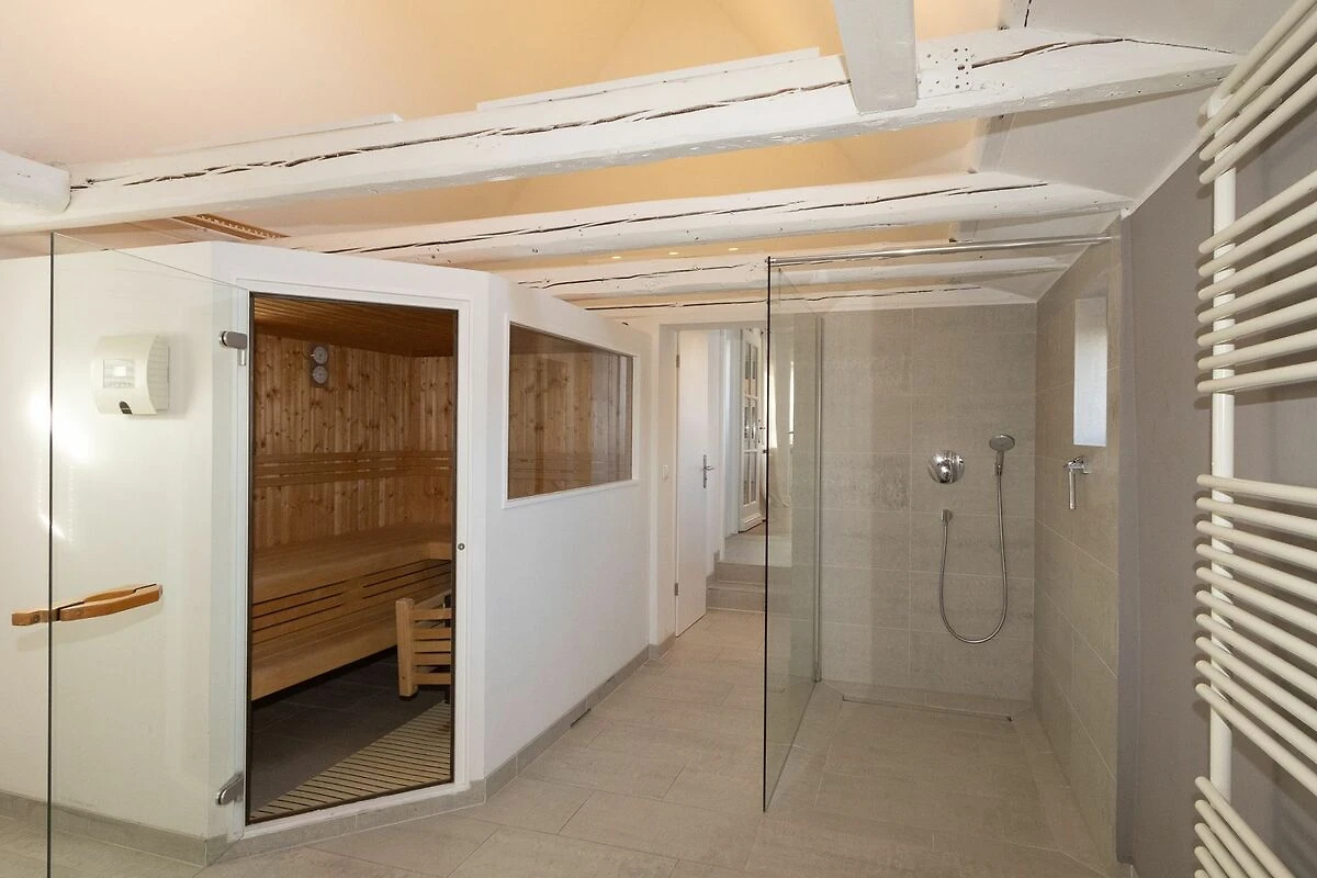 Das 140 qm grosse Haus verfügt über 3 Schlafzimmer mit Boxspringbetten, 2 Bäder mit Dusche und Badewanne, ein separates Gäste WC, sowie einen grosszügigen Sauna- und Wellnessbereich mit Regendusche. Die exklusive Küche ist mit edlen Materialien, hochwertigen Geräten und allem Zubehör ausgestattet. Sie liegt offen zum Ess- und Wohnzimmer mit dem Original Kachelofen. Die Wohn- und Schlafbereiche sind mit gekalkten Eichendielen ausgelegt, die Eingangs- und Nassbereiche mit grauem Feinstein. Flatscreen TV im Wohnbereich und allen Schlafzimmern gehören ebenso zur technischen Ausstattung wie Blue Ray-DVD-Player, CD, Receiver und ein Highspeed-W-Lan Anschluss.