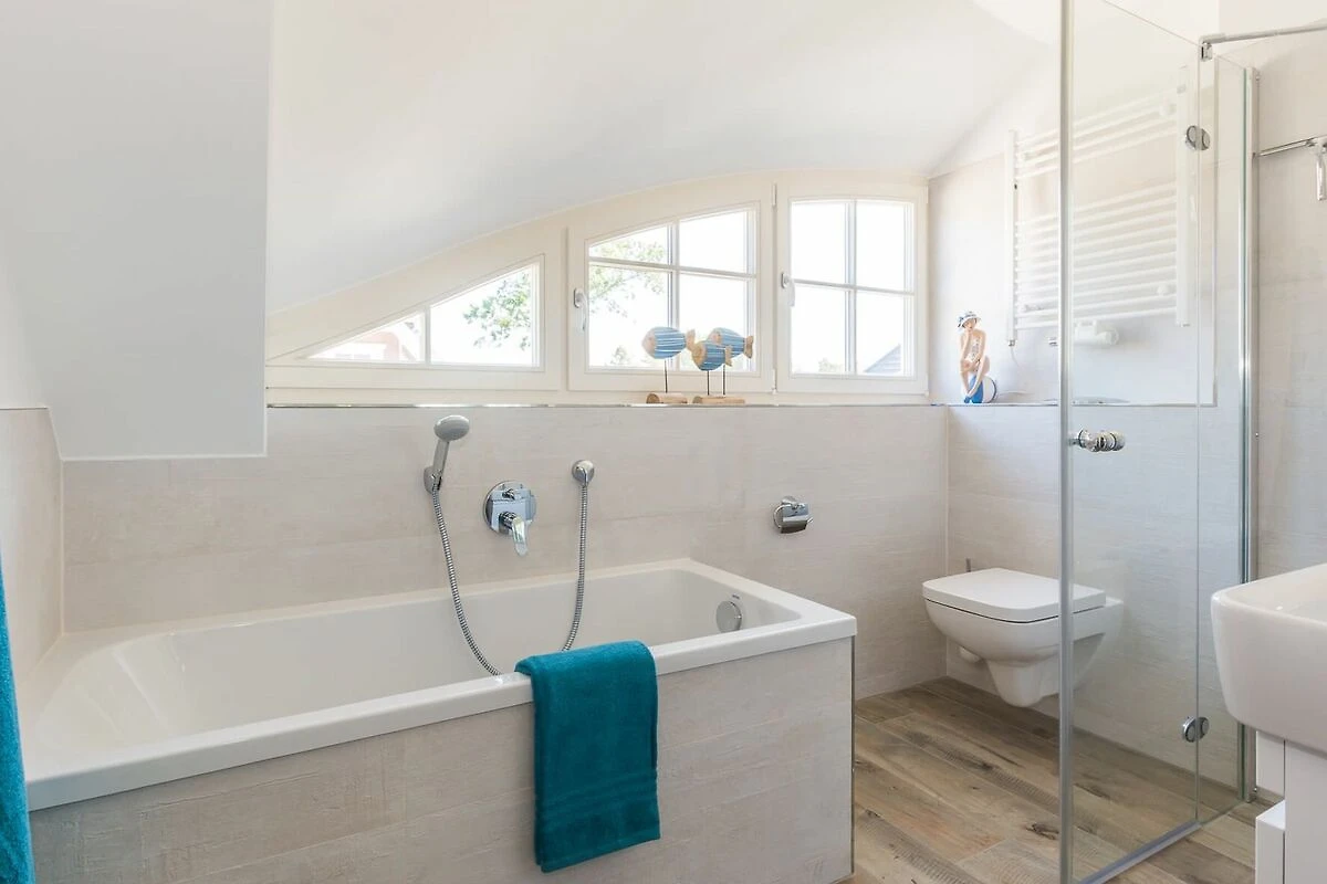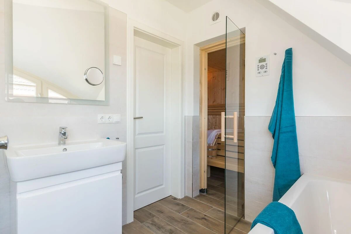 • 2 Bäder: Im Erdgeschoss befindet sich ein Gäste-WC mit Dusche, während das Bad im Obergeschoss mit einer Badewanne und Sauna ausgestattet ist perfekt zum Relaxen nach einem langen Tag am Strand oder in der Natur.