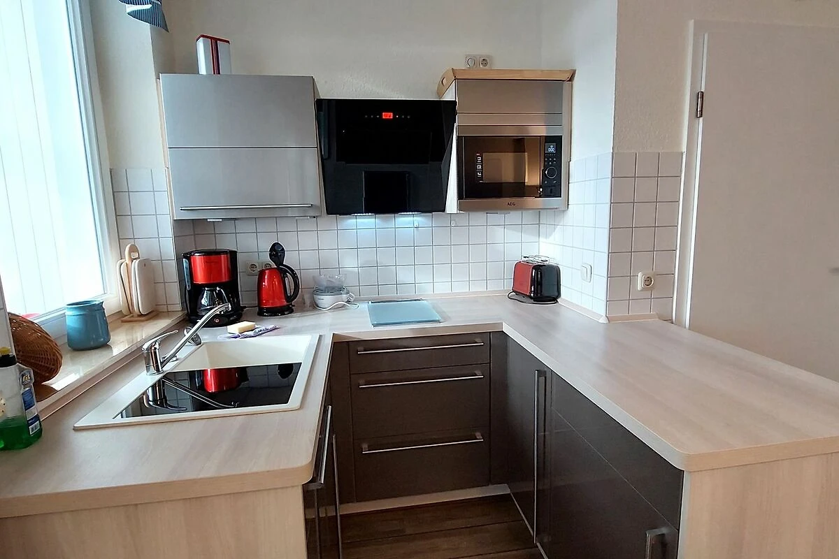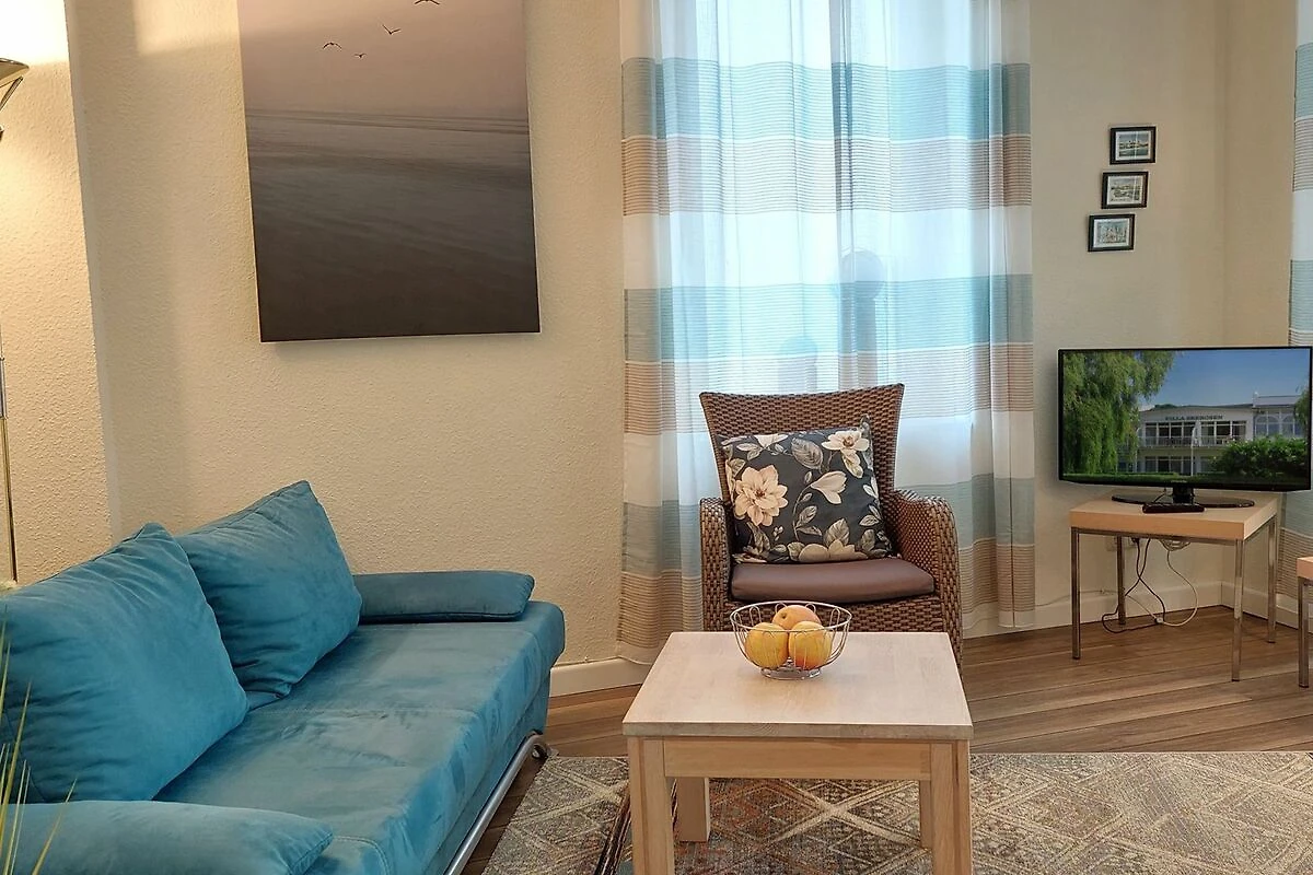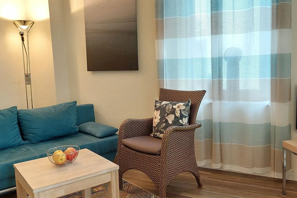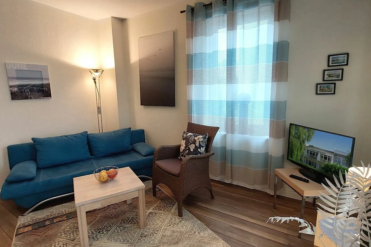 Ihre 2-Raum Nichtraucher - Ferienwohnung 37RB9 hat eine Grösse von ca. 64 qm und ist für max. 3 Personen eingerichtet. Sie befindet sich im 1. Obergeschoss der Villa. Der dazugehörige Wintergarten mit einen wunderschönen Blick über den Schmachter See ist zu jeder Jahreszeit ein Traum. Ihre Wohnung bietet zu allen Jahreszeiten auch bei Regenwetter einen Logenplatz mit einer bezaubernden Aussicht über die vielfältige Landschaft. Die Ferienwohnung bietet einen kombinierten Wohnraum mit einem Essplatz und einer Sitzgruppe, die auch eine Schlafgelegenheit für 1 Kind bietet. Ausserdem sind eine offene moderne Küche, ein Schlafzimmer, ein Tageslicht-Duschbad mit Waschtisch und WC vorhanden. Alle Räume sind mit einem robusten Holzfussboden ausgestattet. Die technische Ausstattung beinhaltet ein Flachbild-TV, kostenfreien WLAN-Zugang und eine Hifi-Anlage. Die Küche ist mit Kühlschrank mit Gefrierfach, Mikrowelle, Geschirrspüler, Cerankochfeld, Kaffeemaschine, Wasserkocher und anderen „Küchenhelfern“ komplett ausgestattet. Das grosse Schlafzimmer bietet genügend Platz für ein Doppelbett und einen Kleiderschrank.