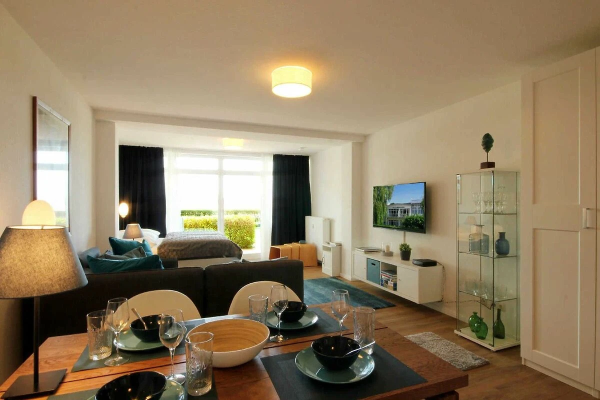 Ihre geräumige 1-Raum Nichtraucher - Ferienwohnung 37RB7 hat eine Grösse von ca. 40 qm und ist für max. 2 Personen eingerichtet. Sie befindet sich im Erdgeschoss der Villa. Die dazugehörige Südterrasse mit einem wunderschönen Blick bis hin zum Schmachter See lädt zum Sonnenbaden und Verweilen ein. Die helle Ferienwohnung ist aufgeteilt in einen kombinierten Wohn- und Schlafraum, eine offene sowie moderne Küche und ein Tageslichtbad mit Dusche Waschtisch, WC und Kosmetikspiegel. Das Wohnzimmer ist mit einer gemütlichen Sitzgruppe sowie separatem Doppelbett möbliert. Die technische Ausstattung beinhaltet ein Flachbildfernseher, WLAN und eine Musikanlage. Die Wohnküche mit zusätzlichem Essplatz ist mit Kühlschrank, Backofen, Cerankochfeld, Kaffeemaschine und weiteren Elektrogeräten komplett ausgestattet. Ein PKW-Stellplatz steht Ihnen im nahegelegenen Parkhaus (ca. 150m vom Objekt entfernt) kostenfrei zur Verfügung.