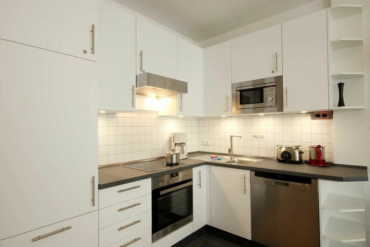 Ihre 2-Raum-Ferienwohnung 37RB13 Am See hat eine Grösse von ca. 50 qm und ist mit bis zu 4 Personen belegbar. Sie befindet sich im 1. Obergeschoss und verfügt über eine grosse Fensterfront und einen schönen Südbalkon, von denen Sie einen wunderschönen Panoramablick auf den Schmachter See haben. Die Nichtraucher-Ferienwohnung ist aufgeteilt in einen gemütlichen Wohnraum mit separatem Essbereich, eine offene Küche, ein Schlafzimmer und ein Duschbad mit Waschtisch, Fön und WC. Das Wohnzimmer ist mit einem Essplatz und einer Sitzgruppe, die auch eine Schlafgelegenheit für die 3. und 4. Person bietet, möbliert. Die technische Ausstattung beinhaltet ein Flachbildfernseher, WLAN und eine Musikanlage. Die moderne Küche ist mit hochwertigen Küchengeräten wie Kühlschrank, Geschirrspüler, Backofen, Cerankochfeld, Mikrowelle und weiteren Elektrogeräten ausgestattet. Das Schlafzimmer verfügt über ein grosses Doppelbett (1,80m x 2,20m) und einen geräumigen Kleiderschrank. Ein PKW-Stellplatz steht Ihnen im nahegelegenen Parkhaus (ca. 150m vom Objekt entfernt) kostenfrei zur Verfügung.