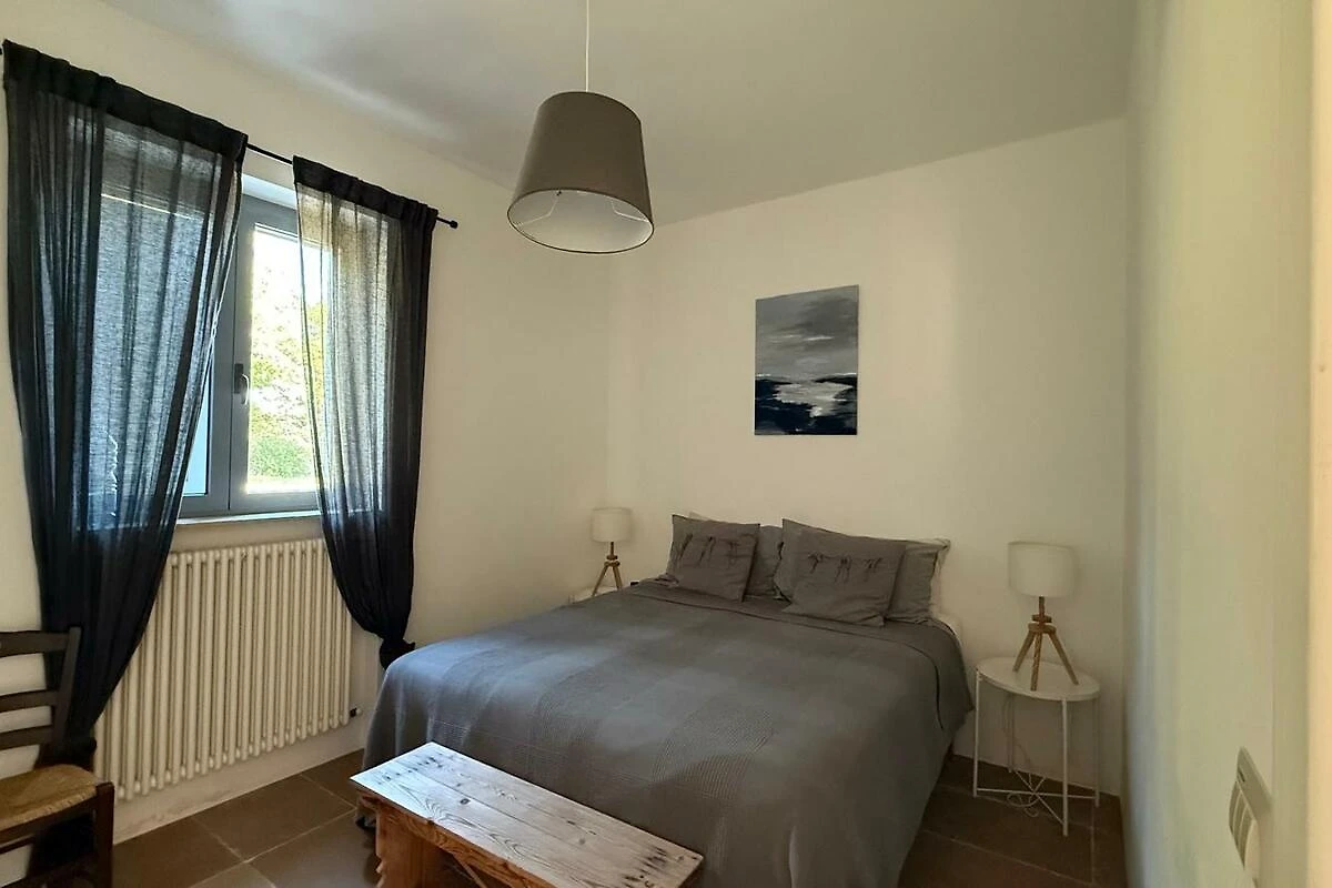 Vom ursprünglichen Steingebäude, in dem sich das Hauptschlafzimmer mit Doppelbett befindet, eingerichtet in Taupe- und Grautönen, mit eigenem externen Zugang und eigenem Duschbad, bis zum erweiterten Villenbau, der die offene Küche, das Wohnzimmer und den Essbereich sowie einen langen Korridor zu den zwei weiteren Schlafzimmern umfasst, jeweils mit beige- und weißfarbenen Einrichtungen, beide geeignet als Zweibettzimmer oder zwei Doppelzimmer mit gemeinsamem Duschraum. Zwei Schlafzimmer mit Klimaanlagen.