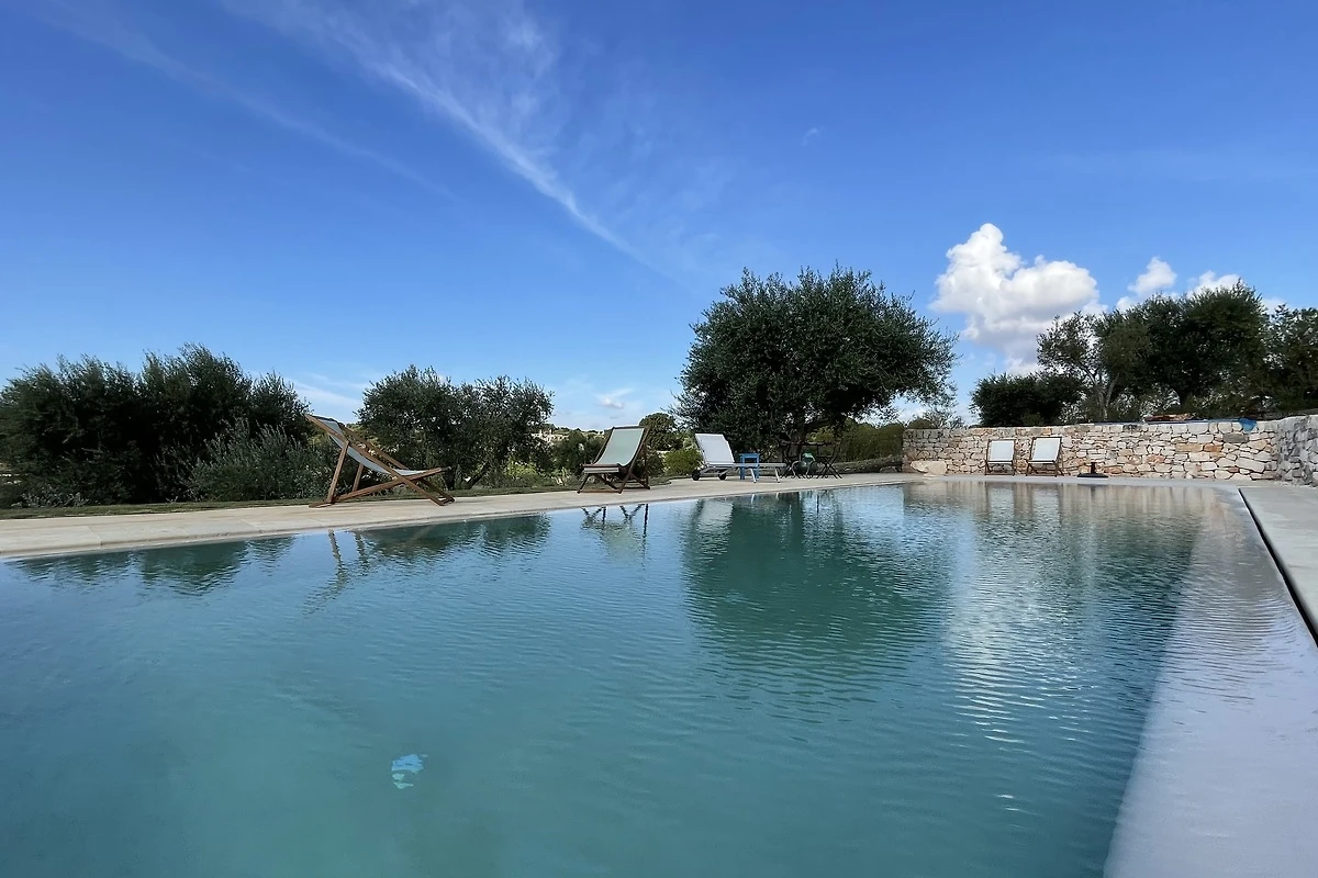Der private Pool, der an einen Strand zu Hause erinnert, ohne die Reise zum Meer antreten zu müssen! Neu gebaut für die Sommersaison 2020, ergänzt das elegante und schlichte Design von Casale La Maison Blanche und ergänzt das weitläufige Gelände, das seinen Gästen eine unübertroffene Privatsphäre mit herrschendem Panoramablick über das Valle d’Itria und die umgebende, großzügige Landschaft bietet.