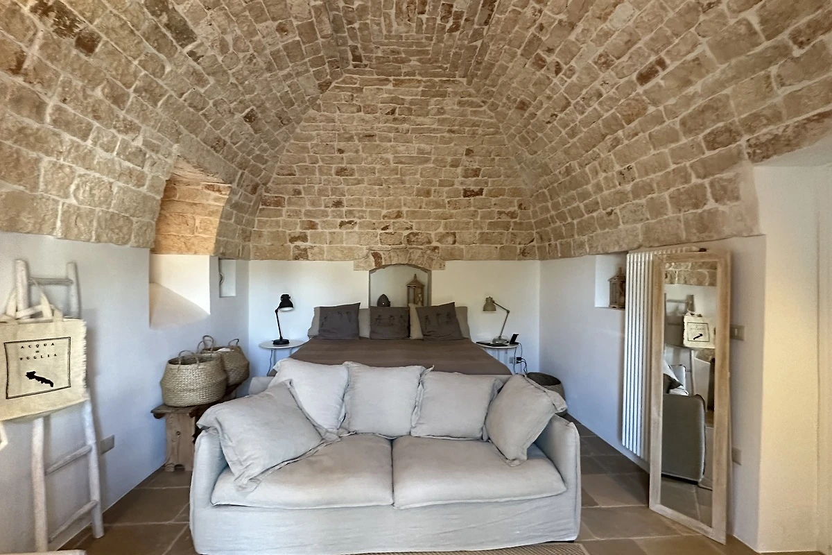 Casale La Maison Blanche zieht Sie in seinen Bann, zeitgenössisch, traditionell und traumhaft. Insgesamt ähnelt es dem Valle d’itria, in dem es sich befindet, einer Ecke der Welt, von der man sich nicht vorstellen kann, dass sie wirklich existiert.