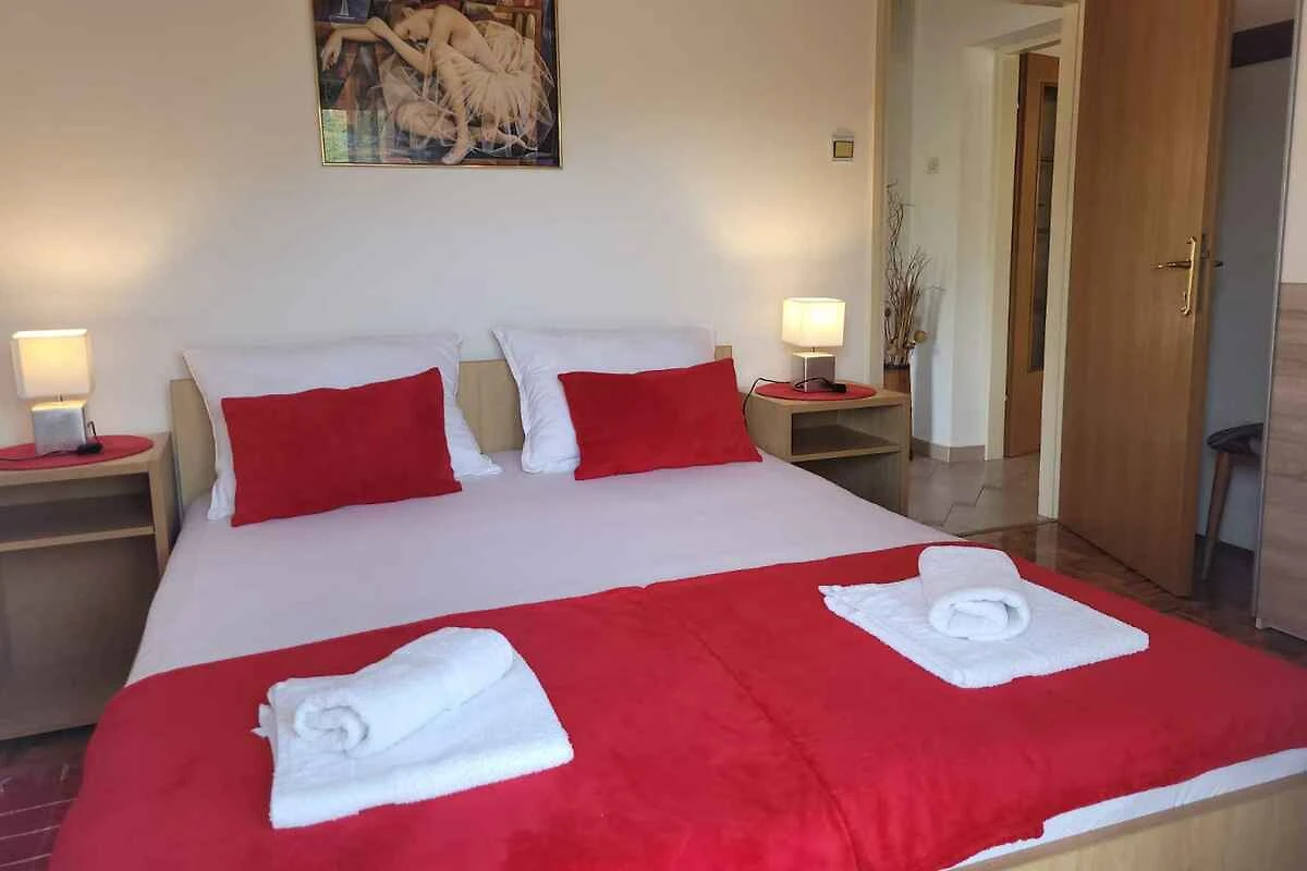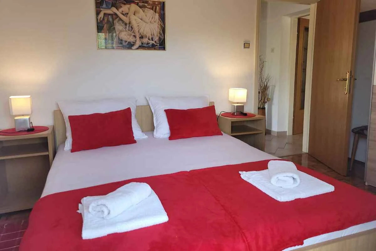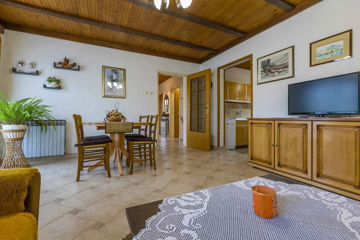 Tribalj. Die Ferienwohnung befindet sich auf einem offenen Gartengrundstück mit Wiese, Blumen, Sträuchern und Bäumen. Der Vermieter wohnt in einem separaten Gebäude auf dem Grundstück. Die Zufahrt erfolgt über eine Nebenstrasse (asphaltiert). Parkplatz (für 1 Pkw) auf dem Grundstück.
