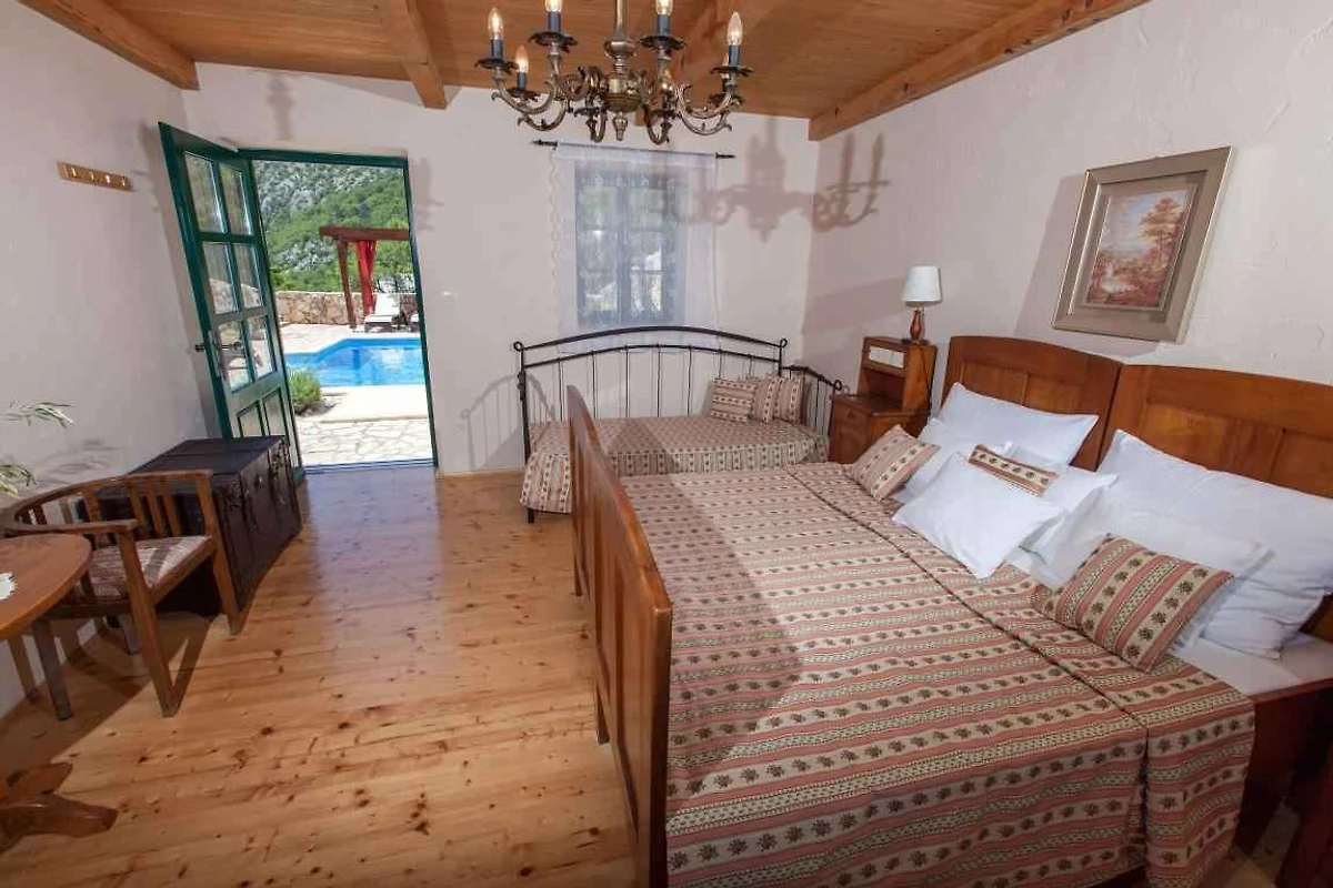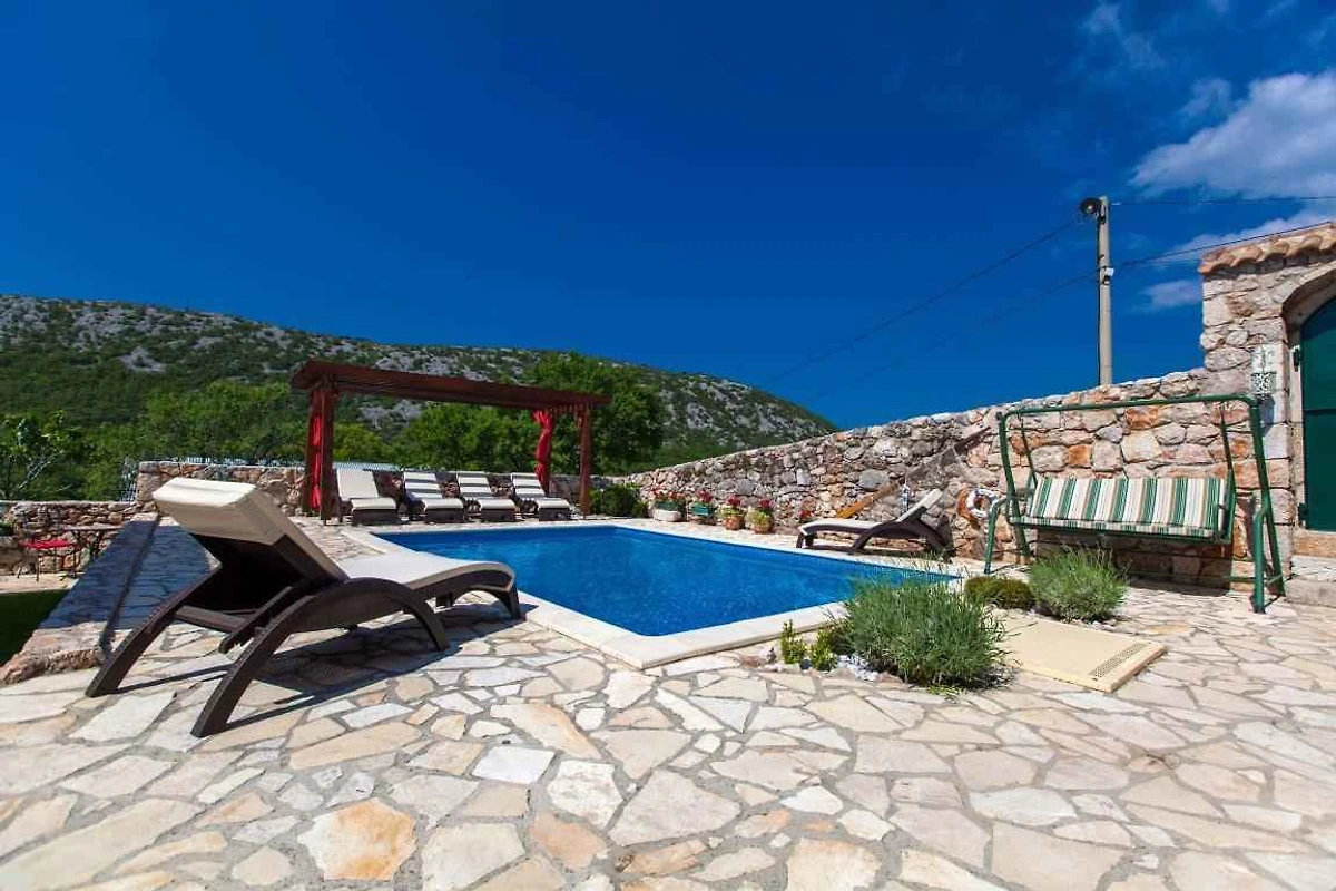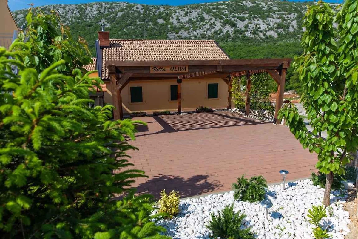 Bribir. Die Villa befindet sich auf einem geschlossenen Gartengrundstück mit Blumen und Sträuchern. Der Vermieter wohnt nicht im Haus oder auf dem Grundstück. Haupt- und Nebenhaus. Die Zufahrt erfolgt über eine Nebenstrasse (asphaltiert). Parkplatz (für 4 Pkws) auf dem Grundstück.